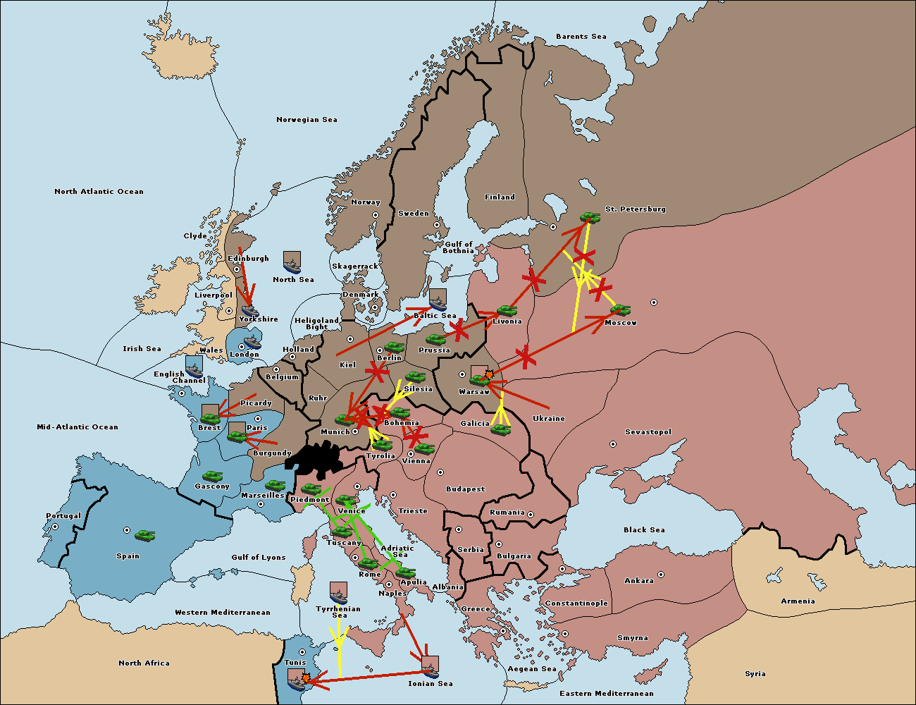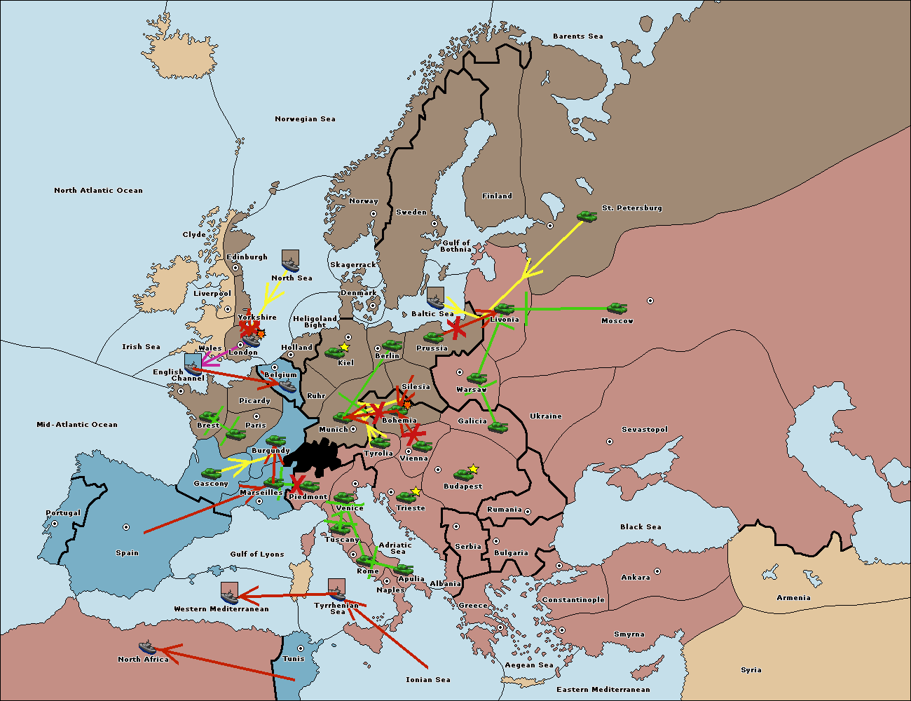 The fleet at Gulf of Lyons move to Tyrrhenian Sea.