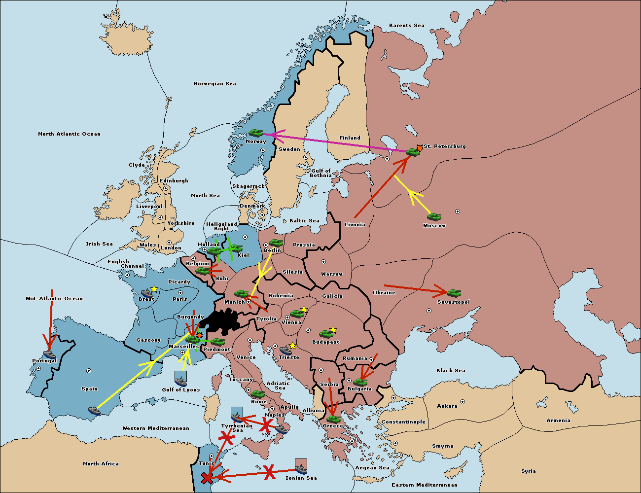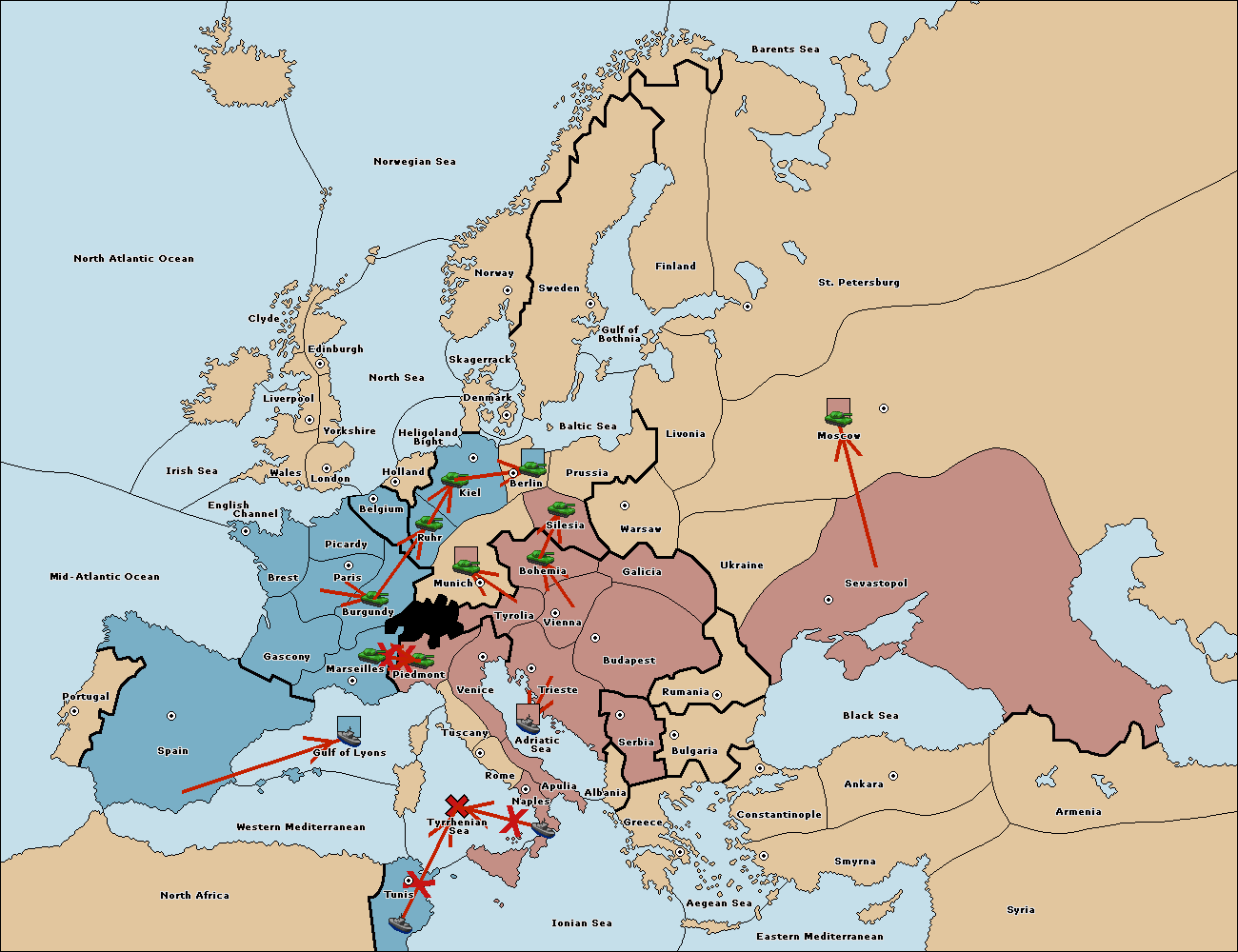 The fleet at Ionian Sea support move to Tunis from Tyrrhenian Sea.