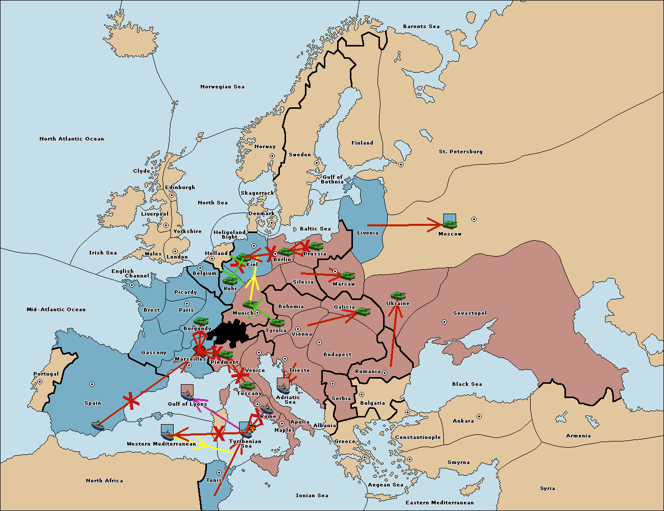 The fleet at Gulf of Lyons move to Tyrrhenian Sea.