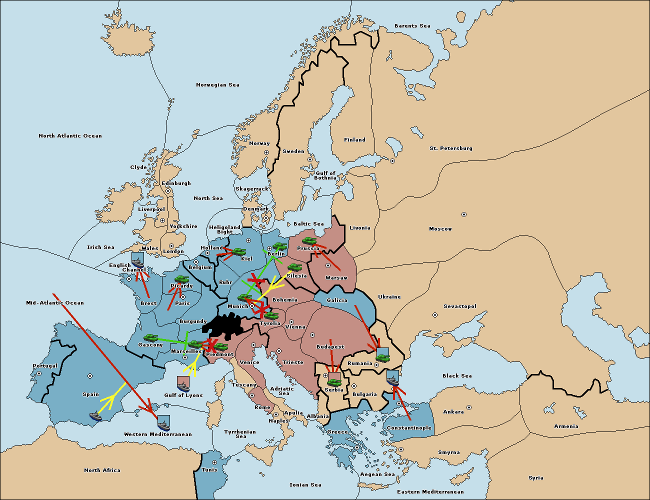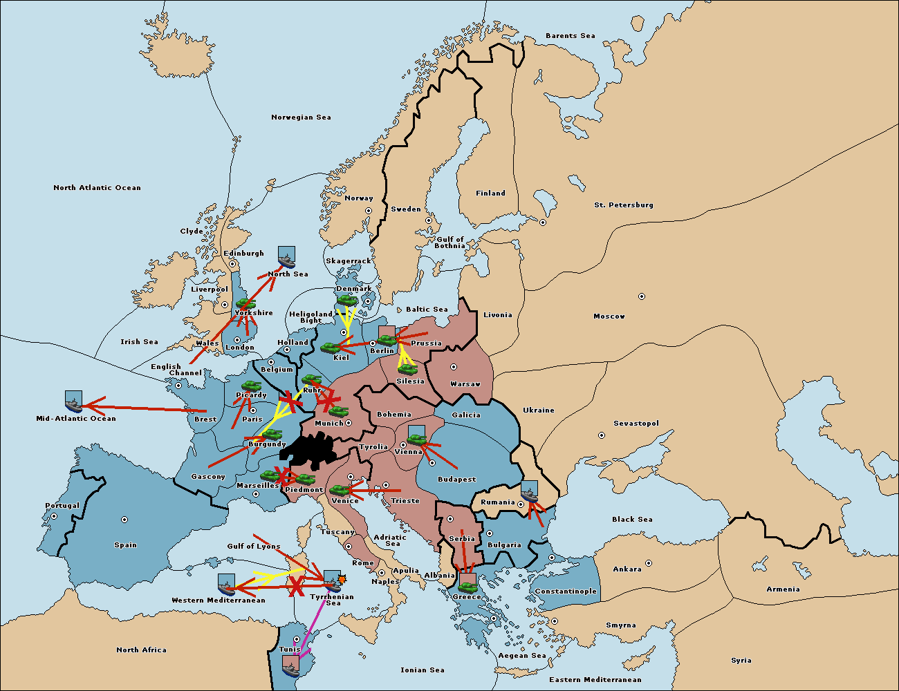 The fleet at Spain (South Coast) support move to Marseilles from Burgundy.