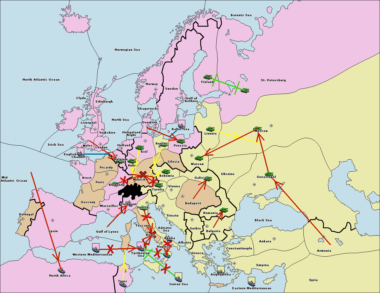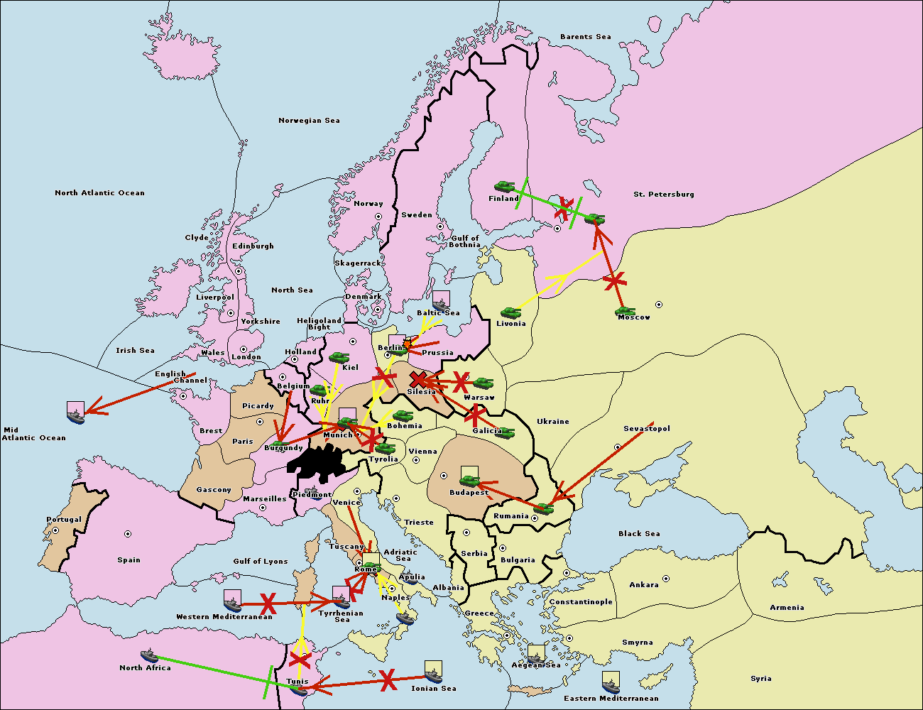 The fleet at Tyrrhenian Sea support hold to Tunis.