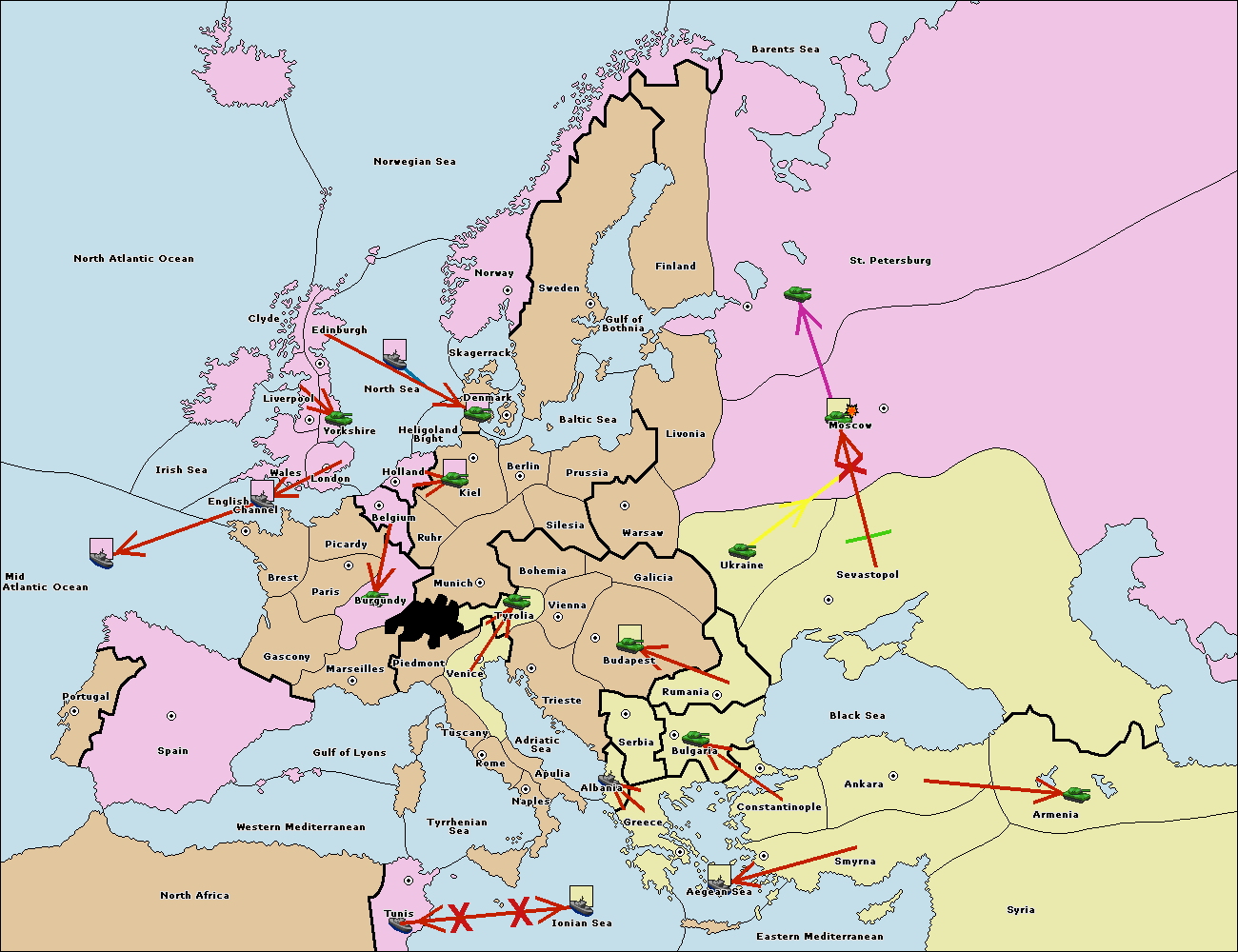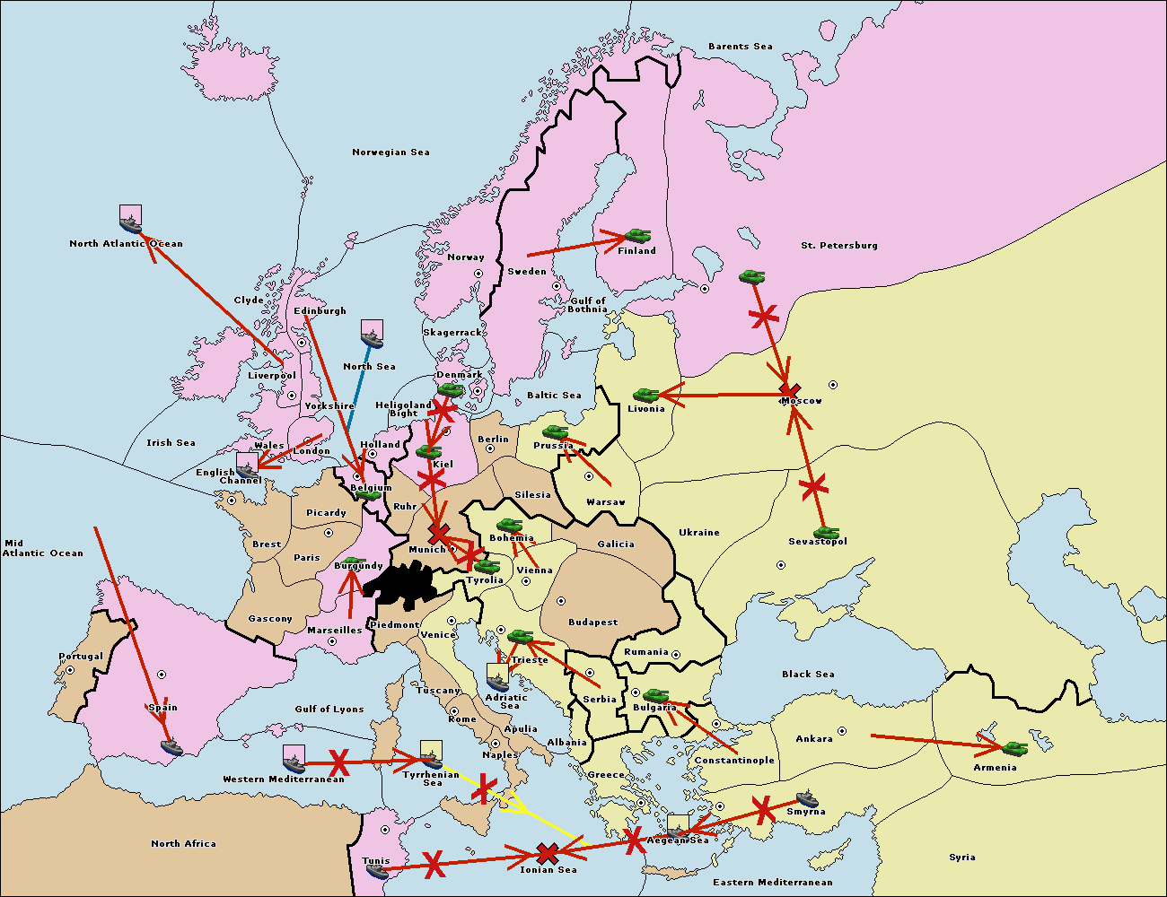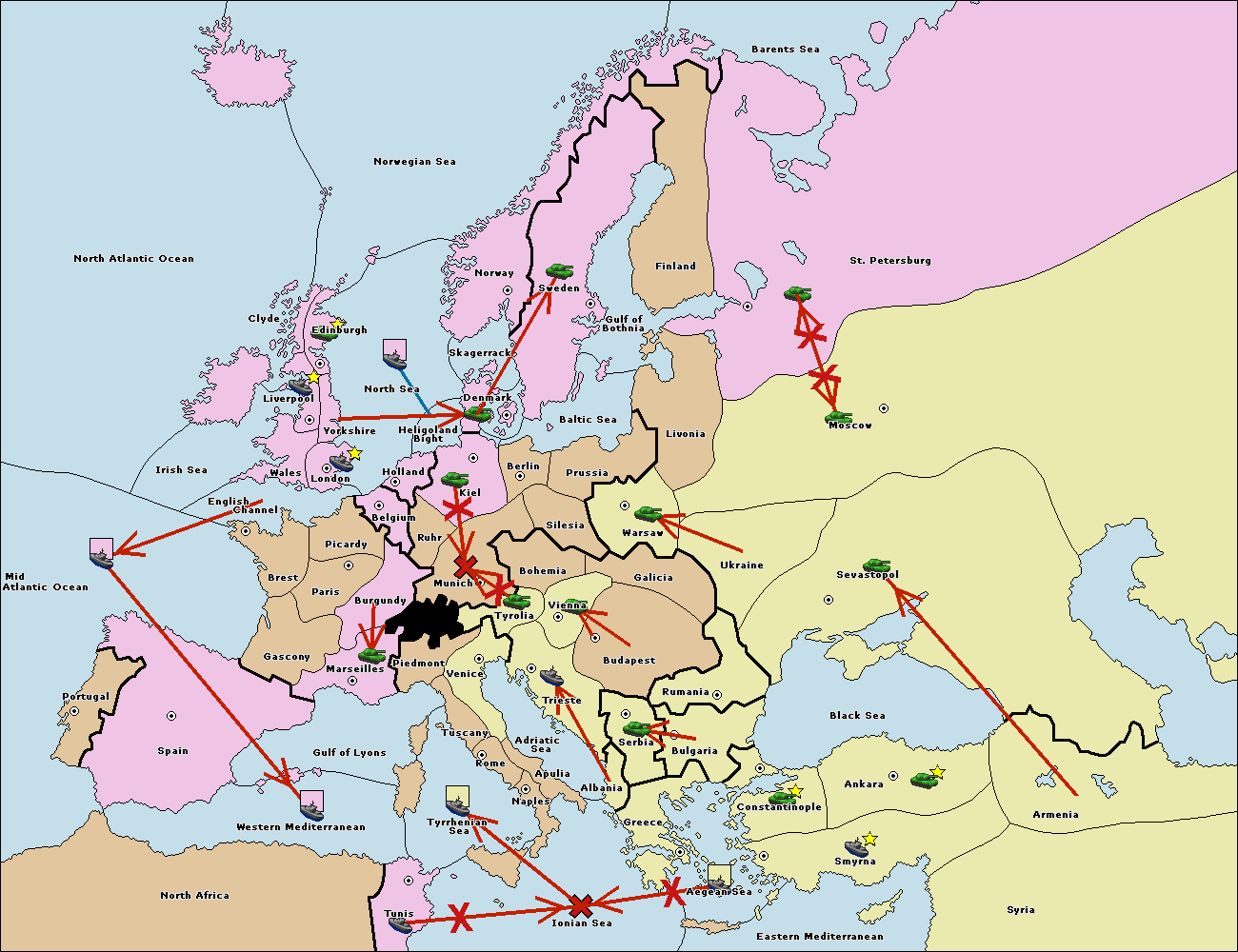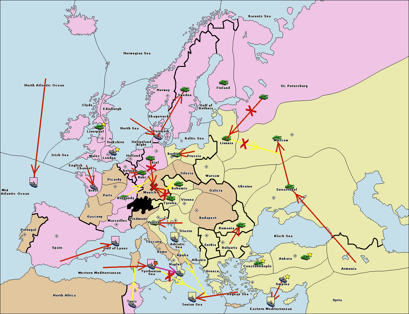 The fleet at Mid-Atlantic Ocean move to Western Mediterranean.