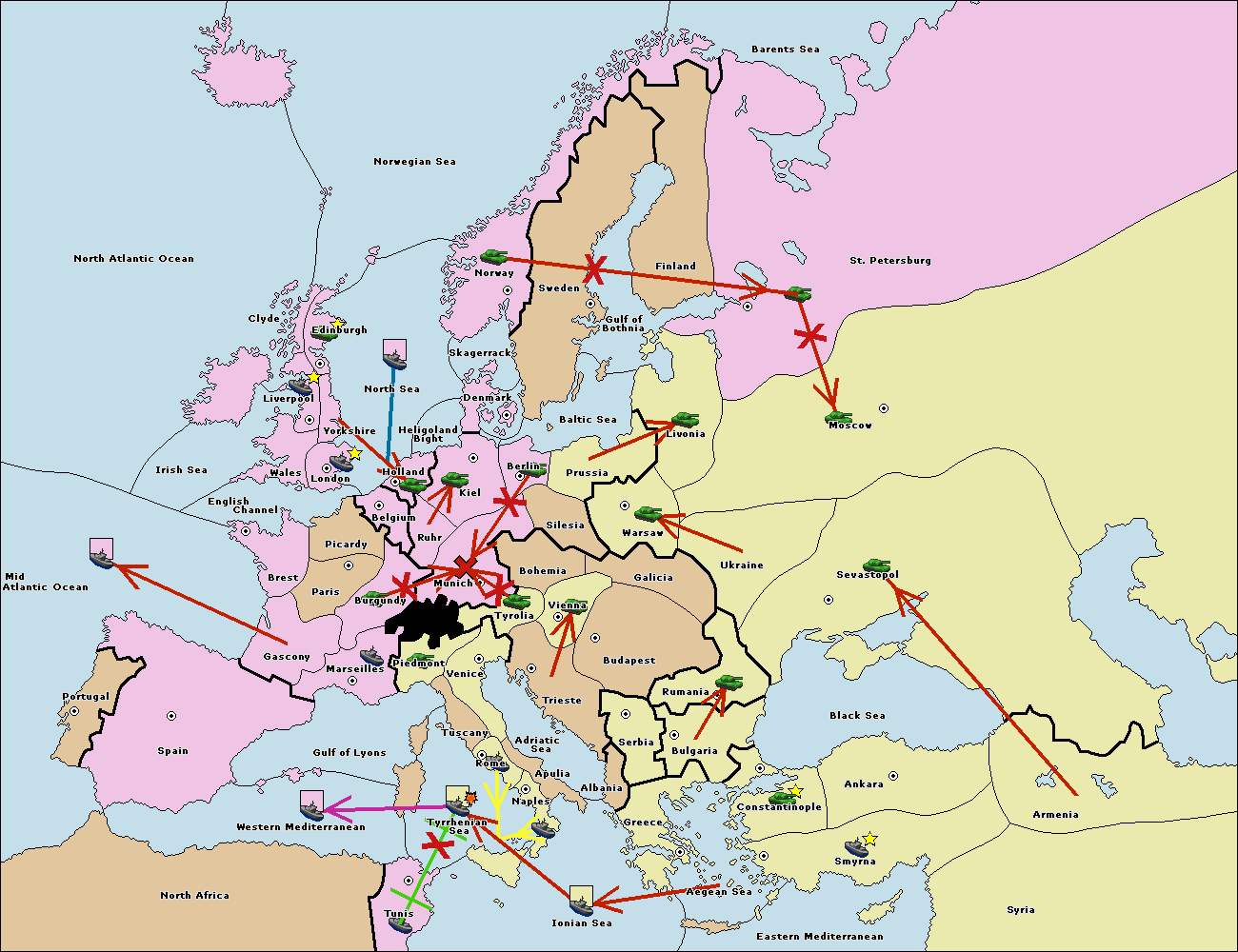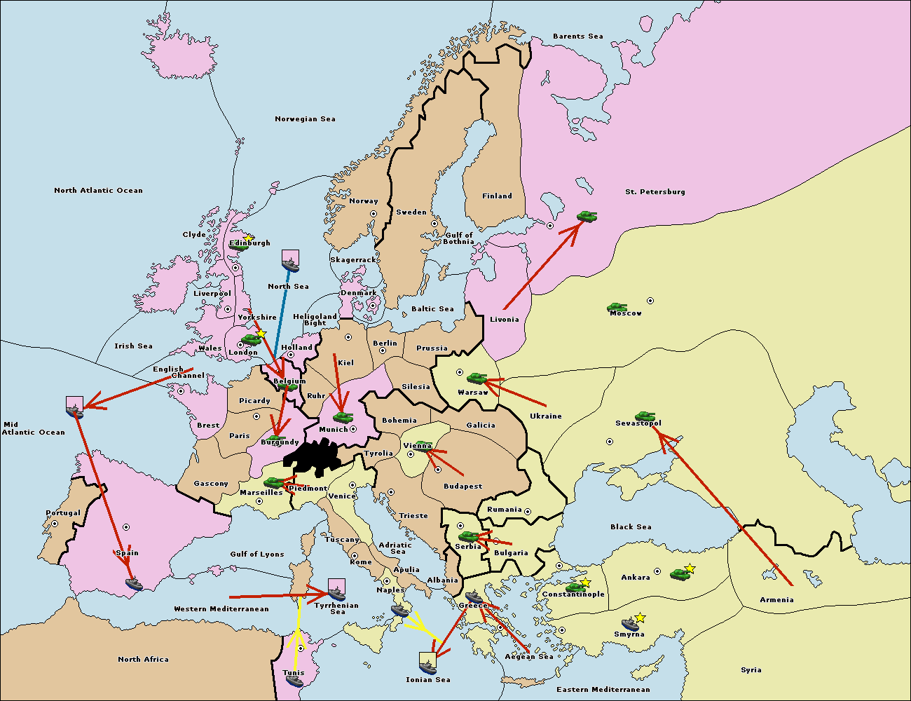 The fleet at Mid-Atlantic Ocean move to Western Mediterranean.