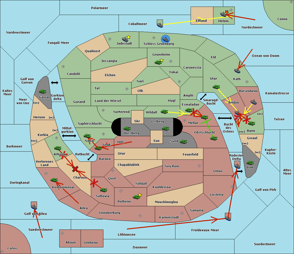 The fleet at Schloss Gruenburg move to Ozean von Doom.