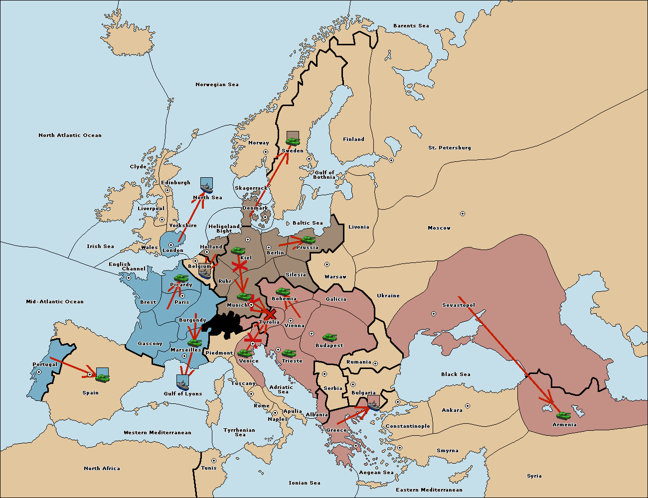 The fleet at Bulgaria (South Coast) move to Aegean Sea.