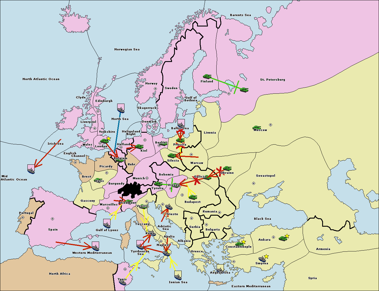 The fleet at Bulgaria (South Coast) move to Greece.