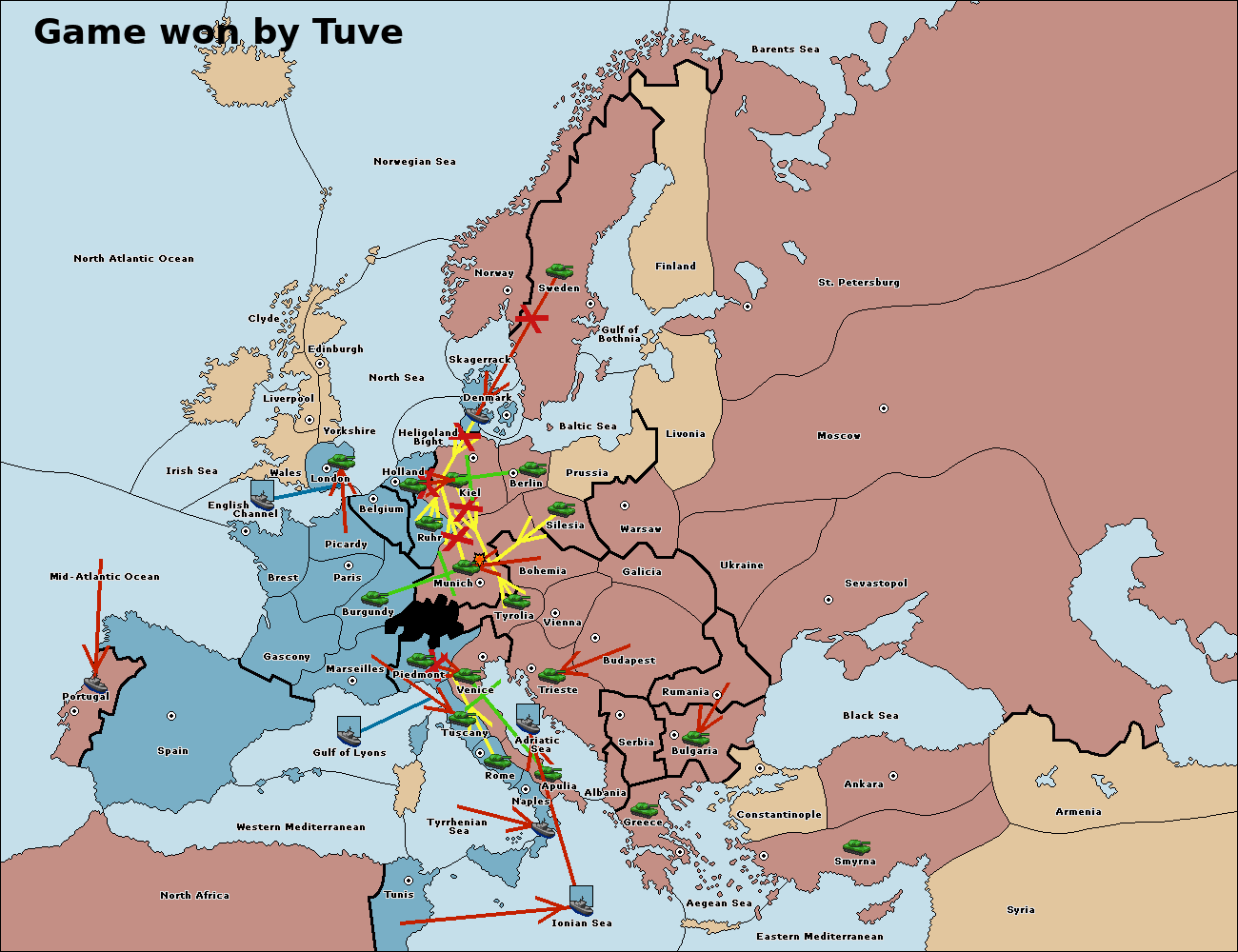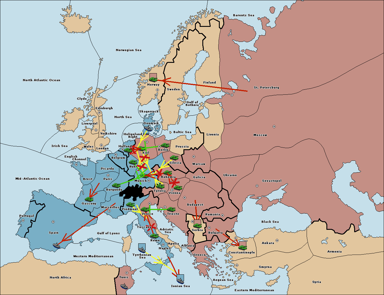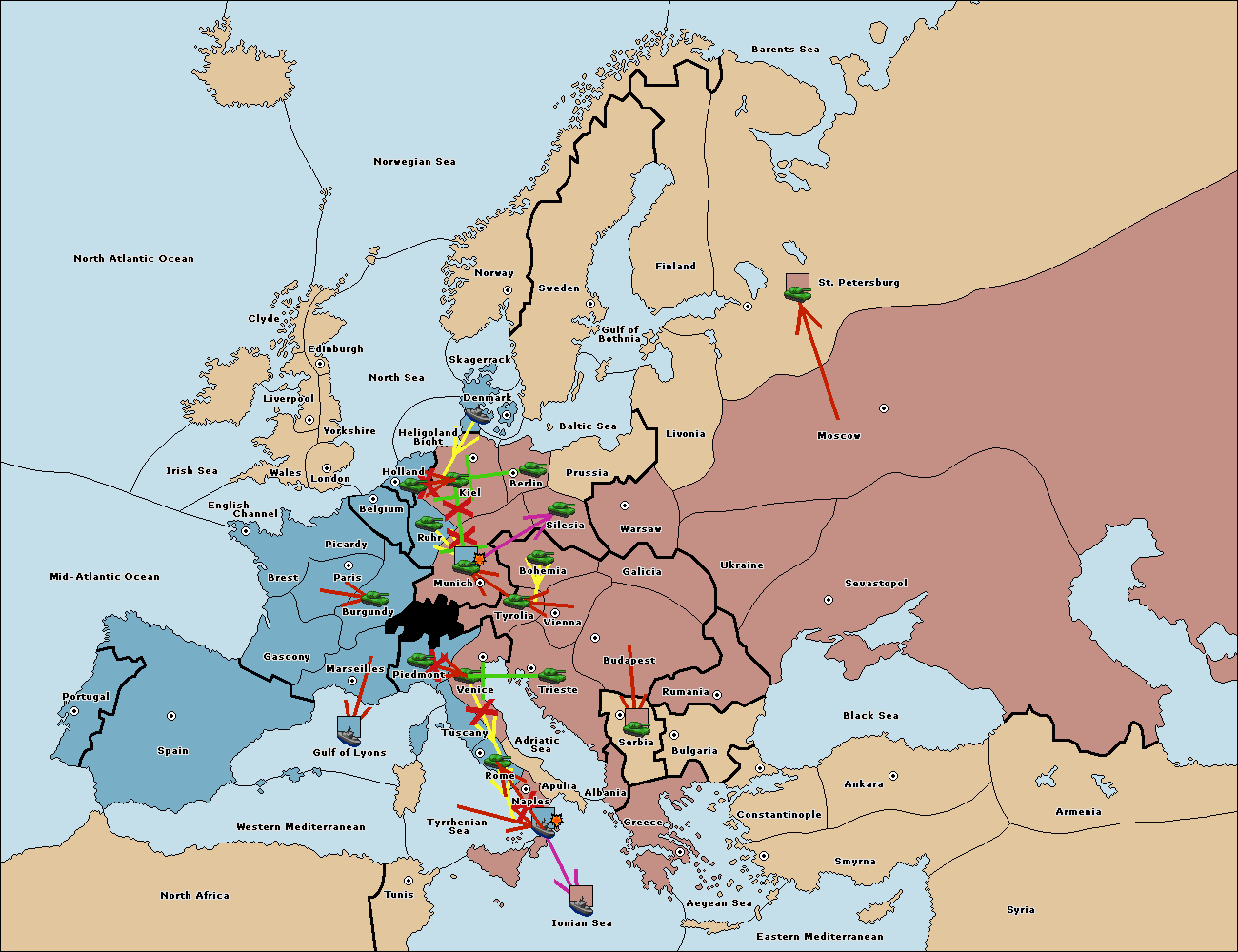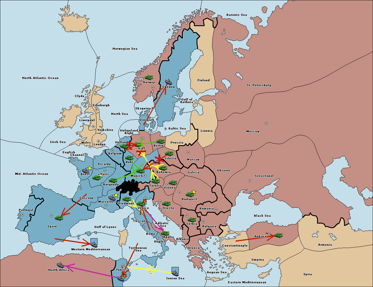 The fleet at Ionian Sea support move to Tunis from Tyrrhenian Sea.