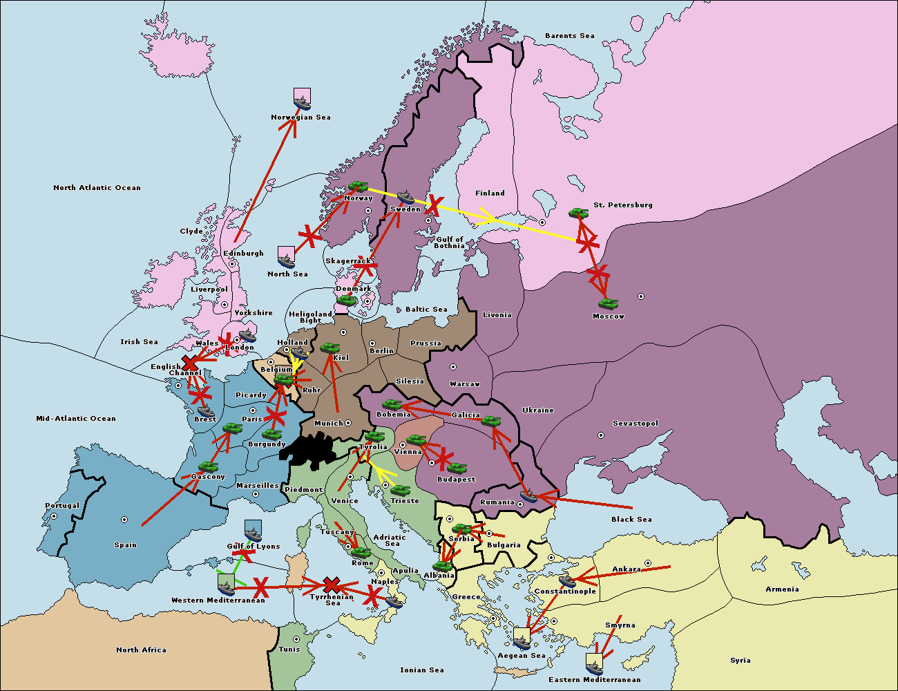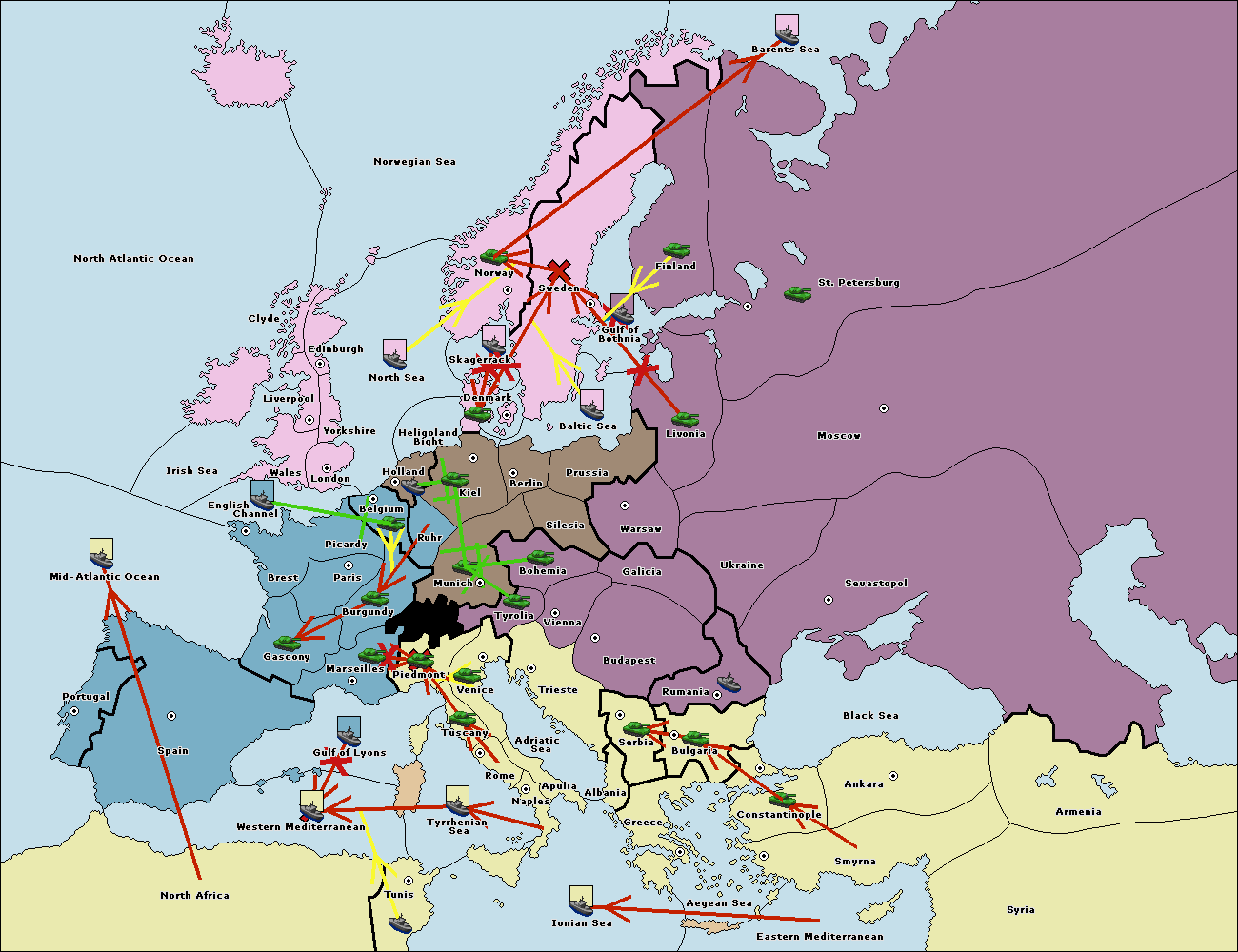 The fleet at Western Mediterranean move to Tyrrhenian Sea.