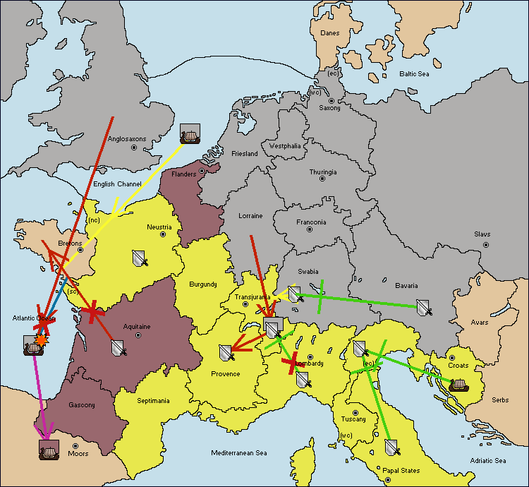 The fleet at Neustria (North Coast) support move to Bretons from Atlantic Ocean.