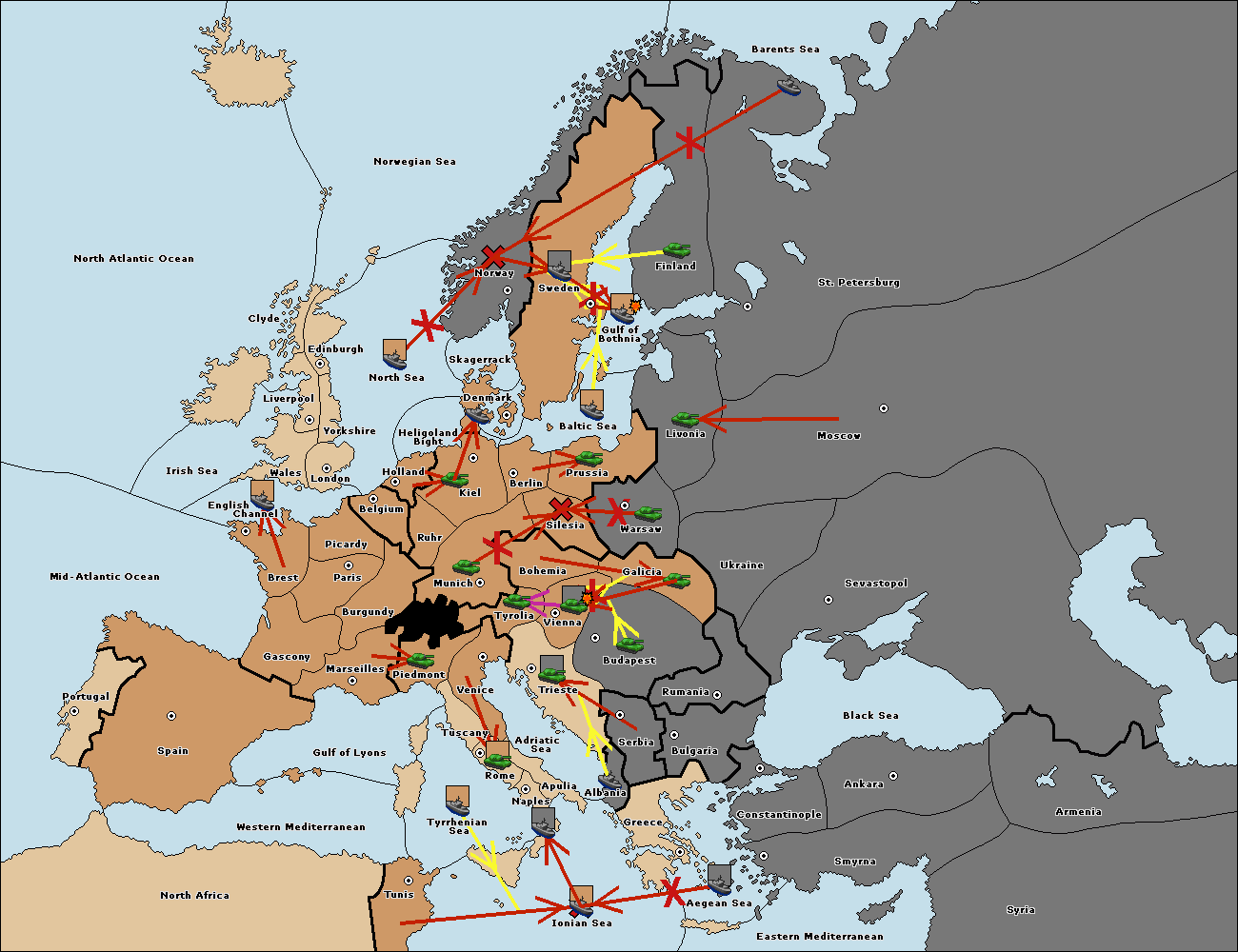 The fleet at Bulgaria (South Coast) move to Greece.