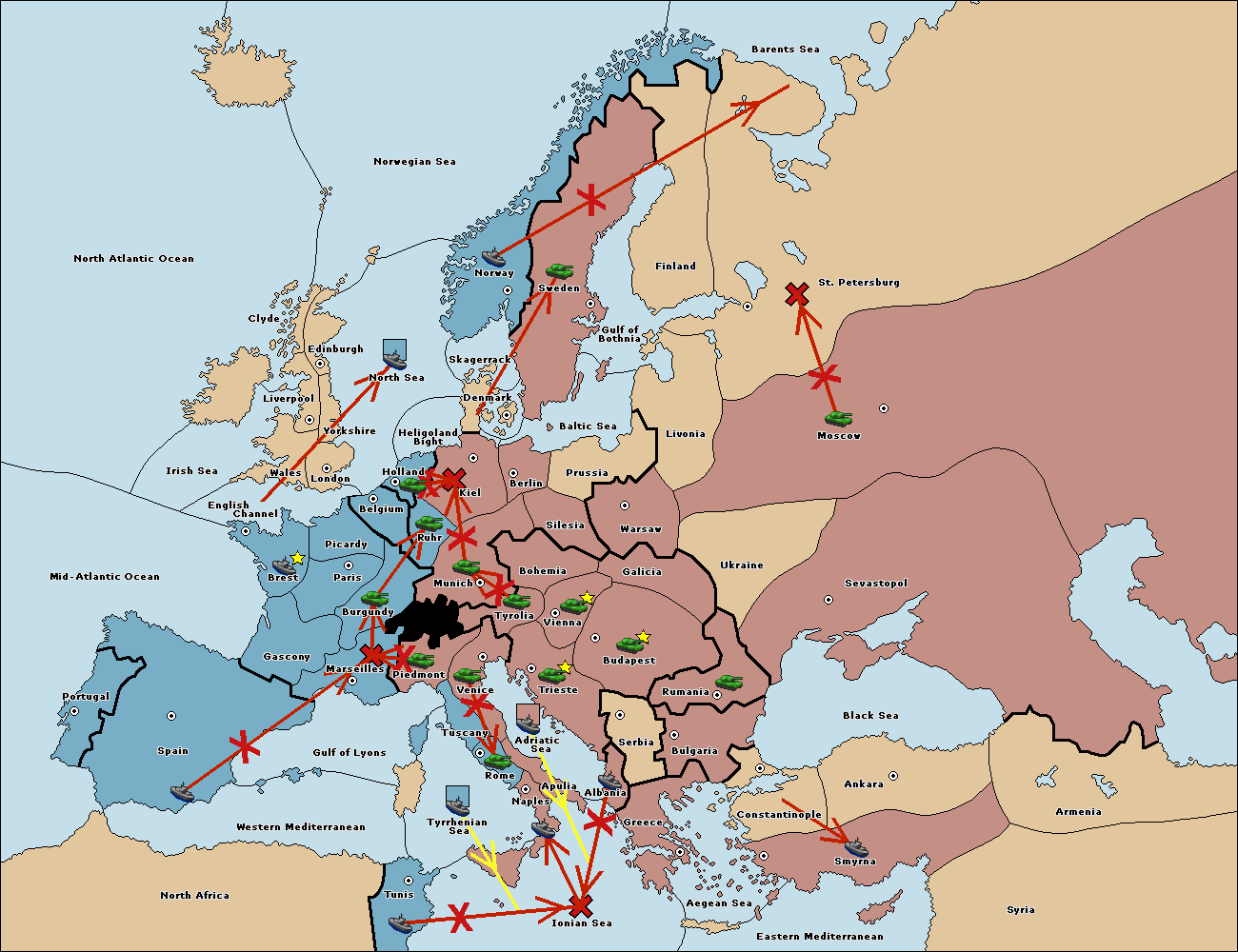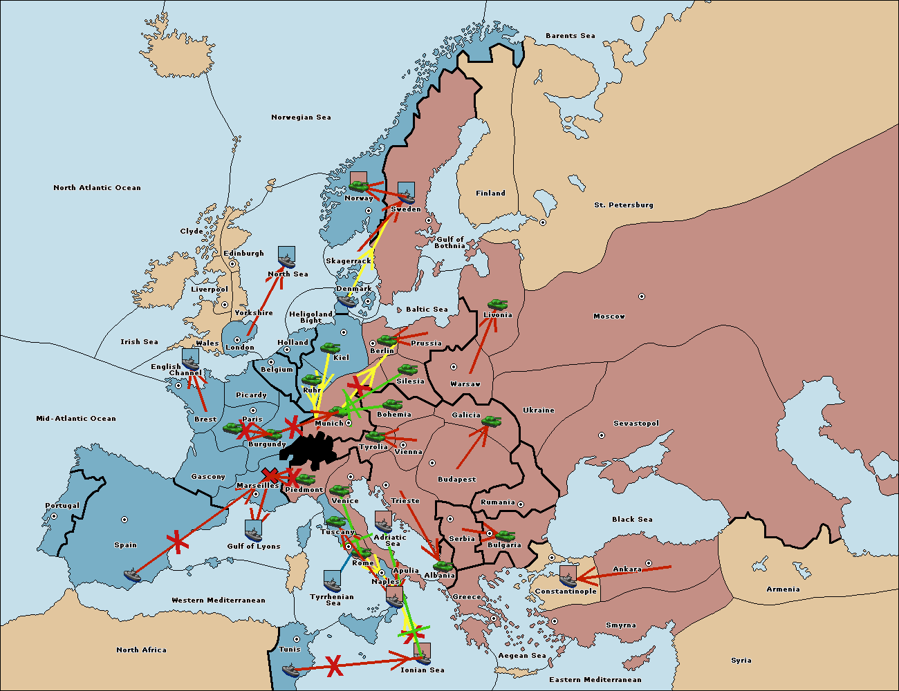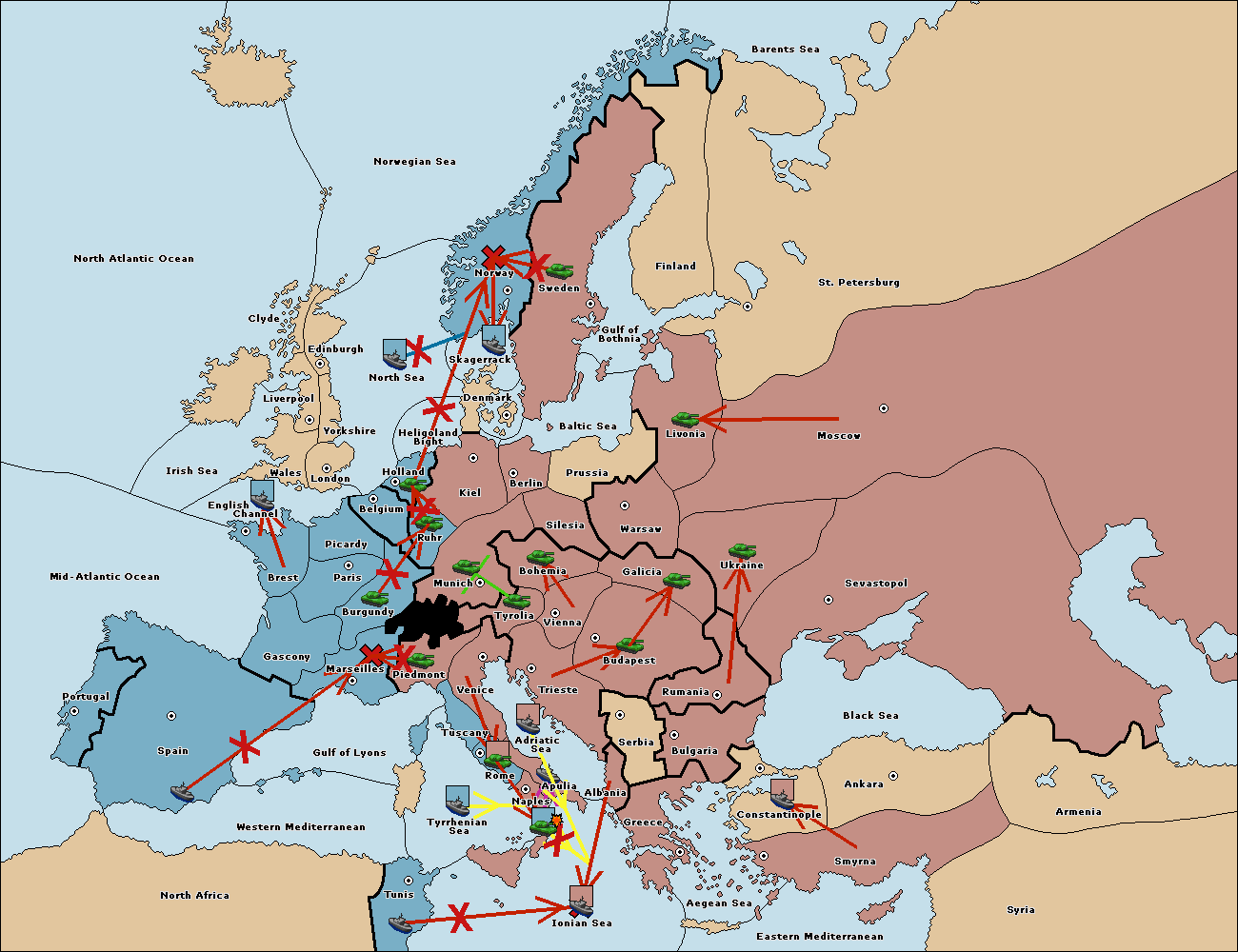 The fleet at Bulgaria (South Coast) move to Constantinople.
