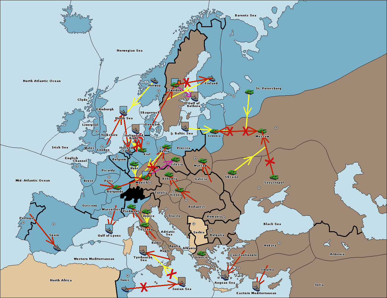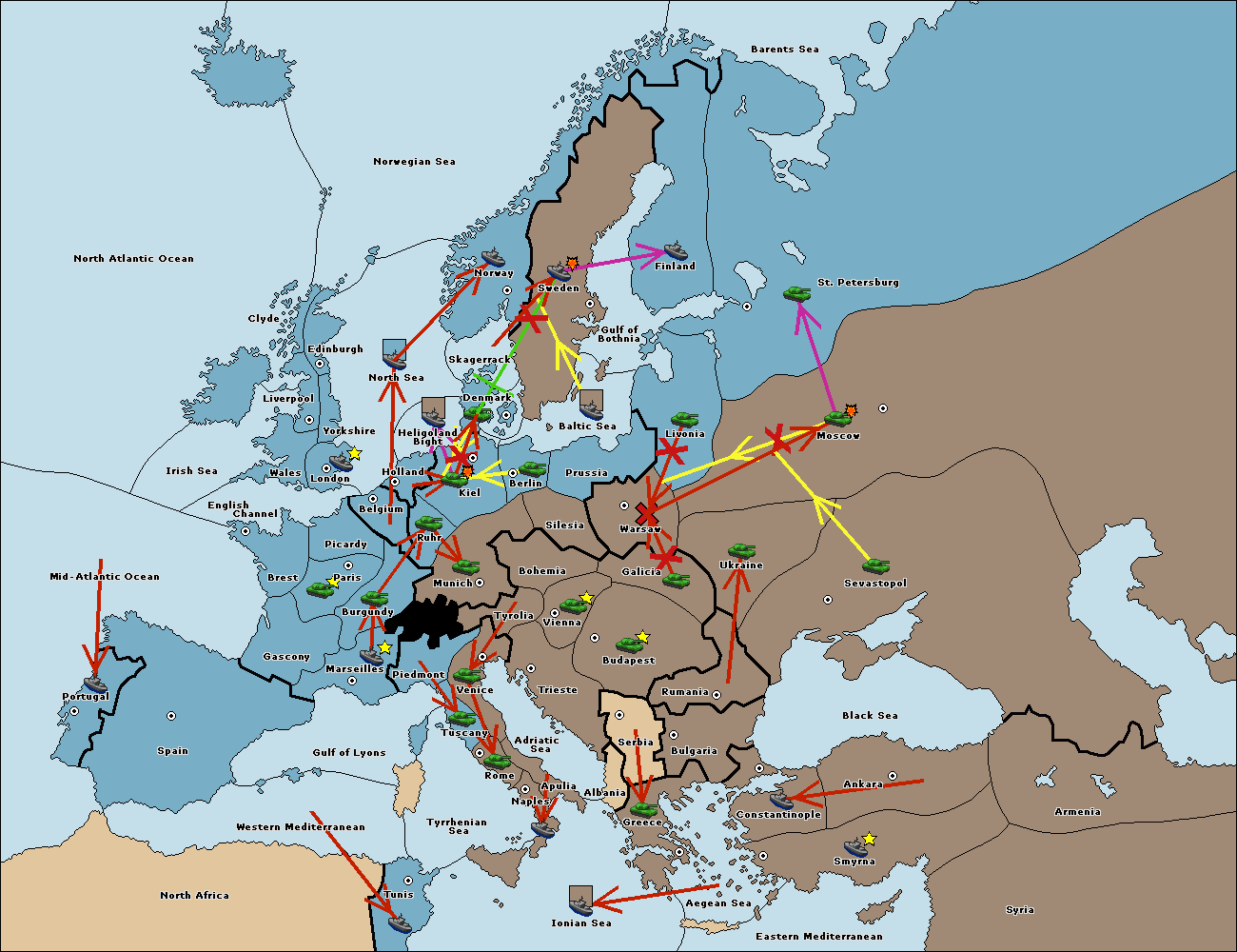 The fleet at Gulf of Bothnia support move to Livonia from Warsaw.