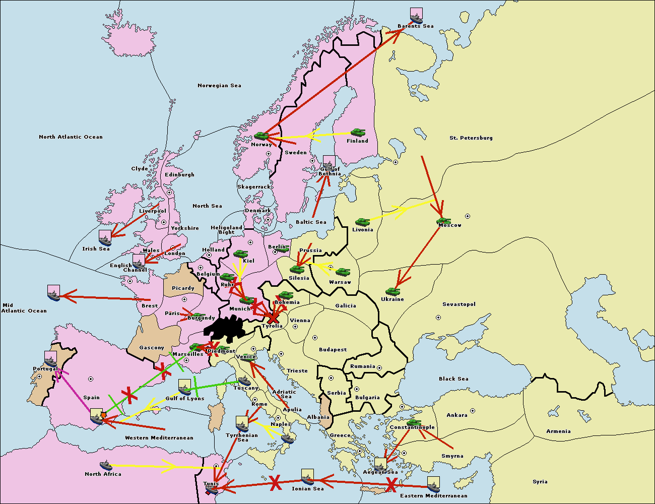 The fleet at Spain (South Coast) support move to Marseilles from Burgundy.