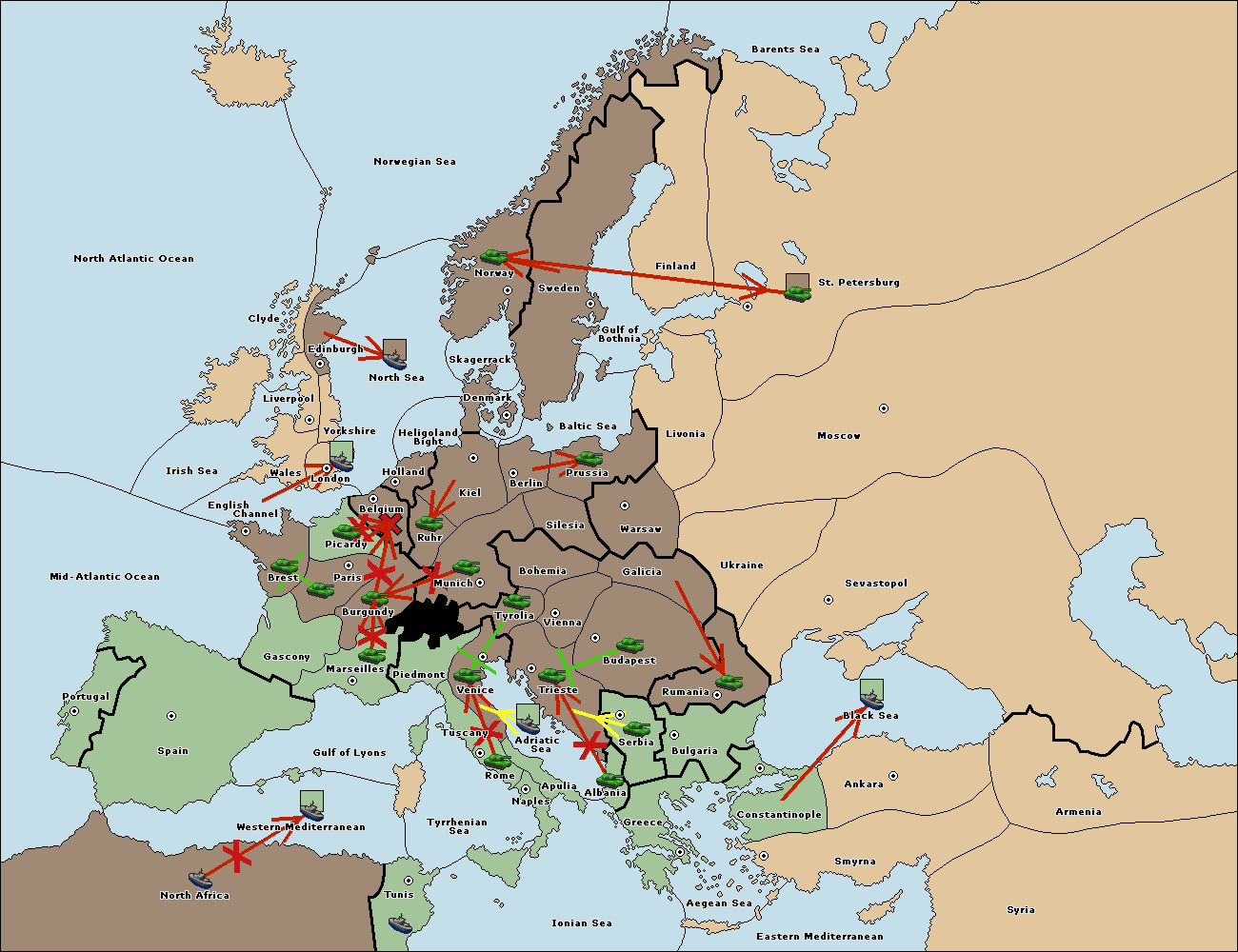 The fleet at Bulgaria (South Coast) move to Constantinople.