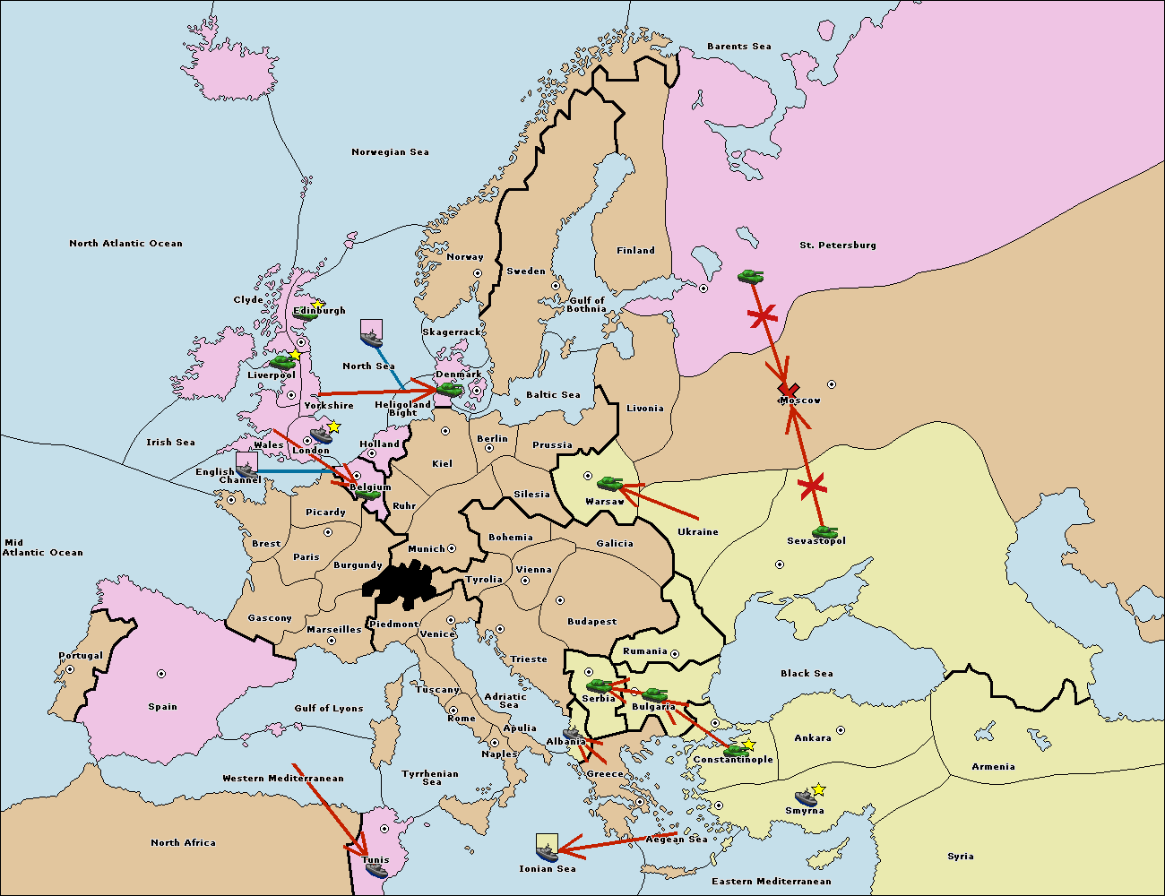 The fleet at Tyrrhenian Sea support hold to Tunis.