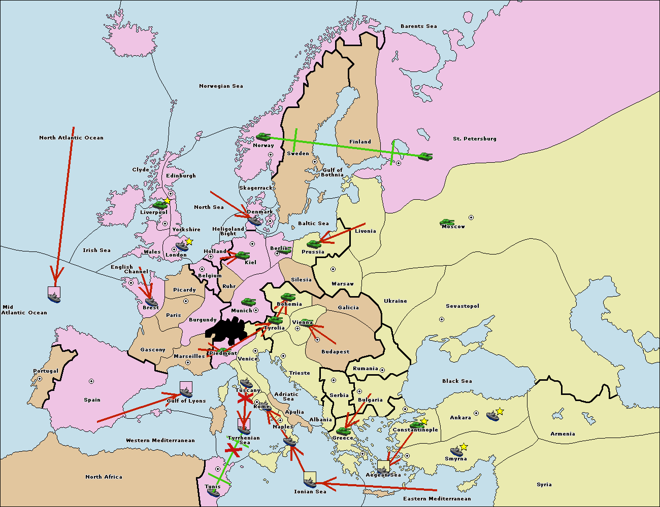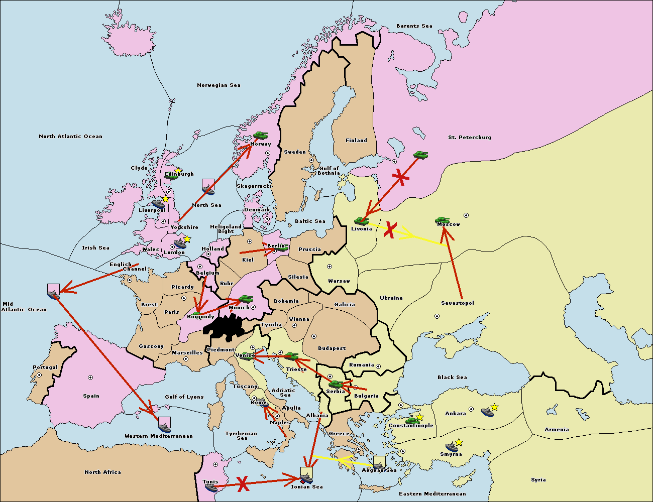 The fleet at Mid-Atlantic Ocean move to Western Mediterranean.