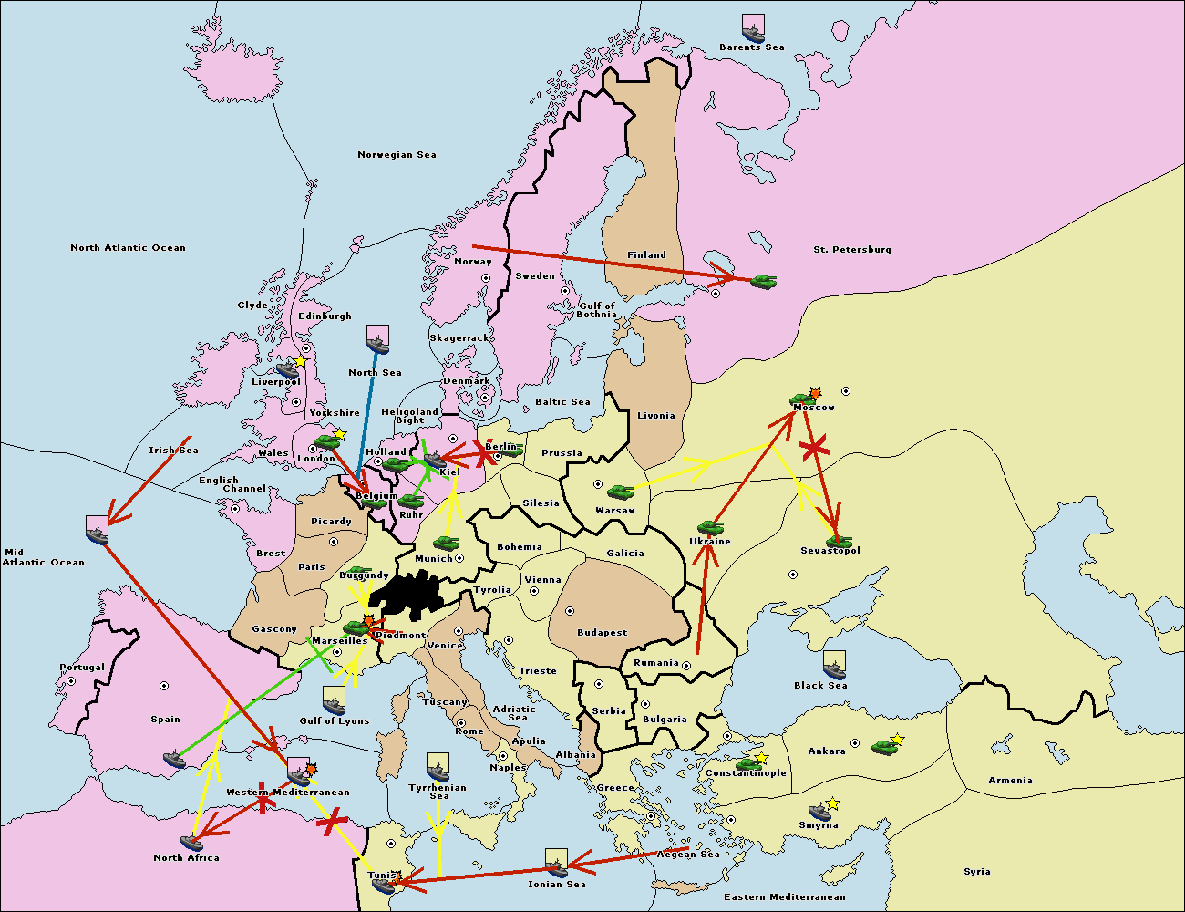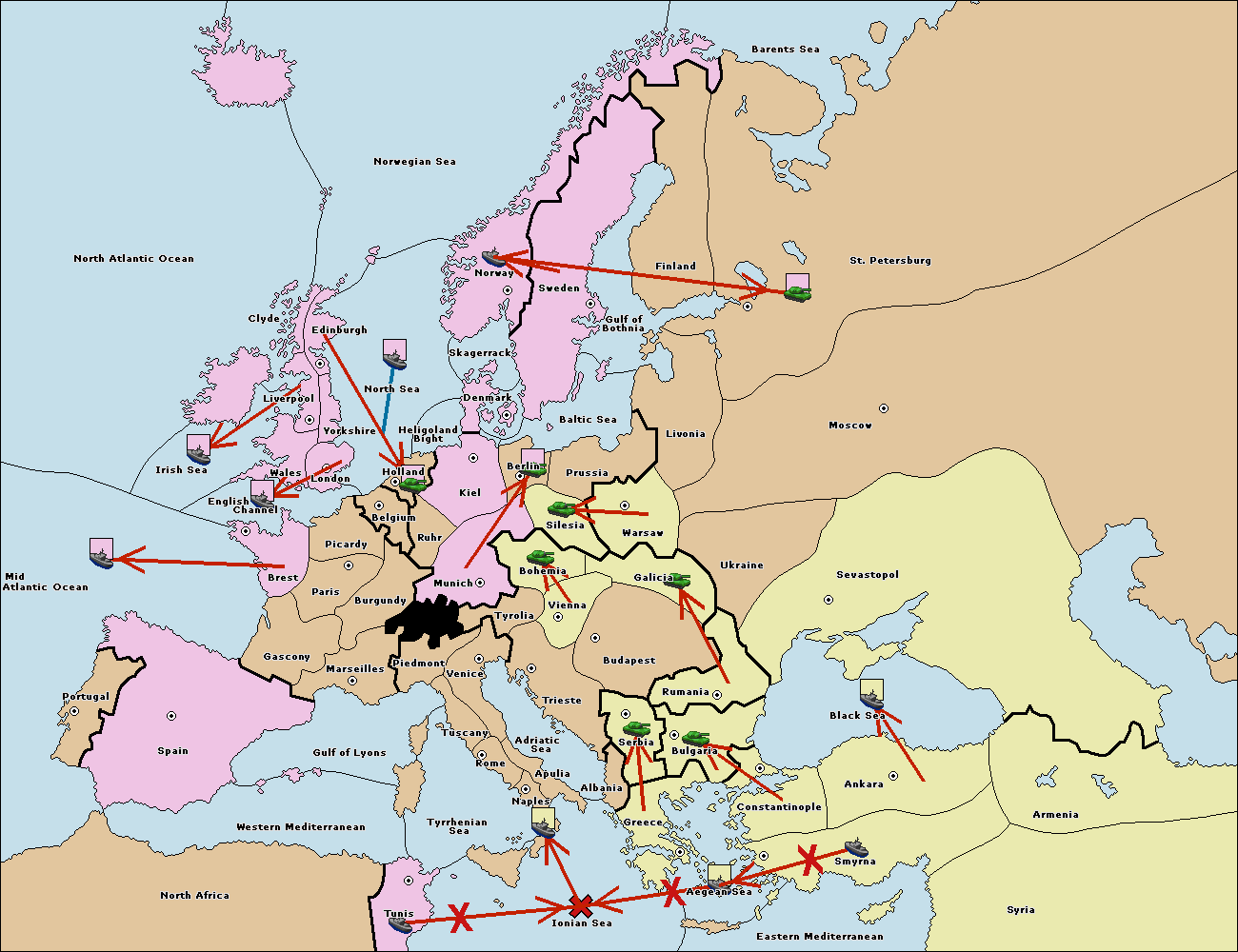The fleet at St. Petersburg (North Coast) move to Barents Sea.