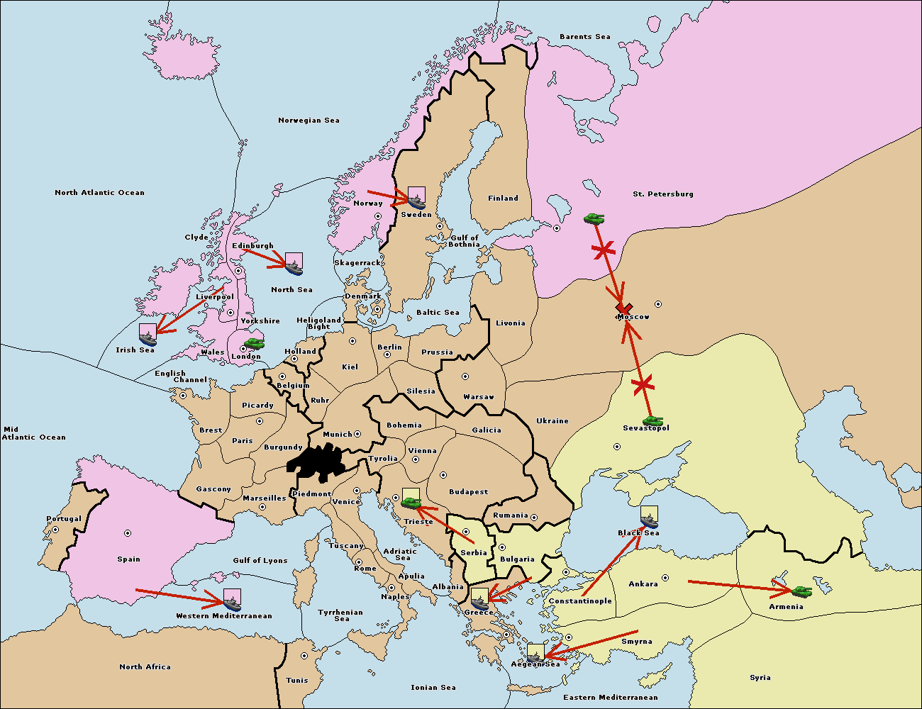 The fleet at Bulgaria (South Coast) move to Greece.