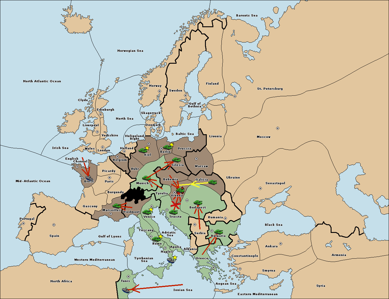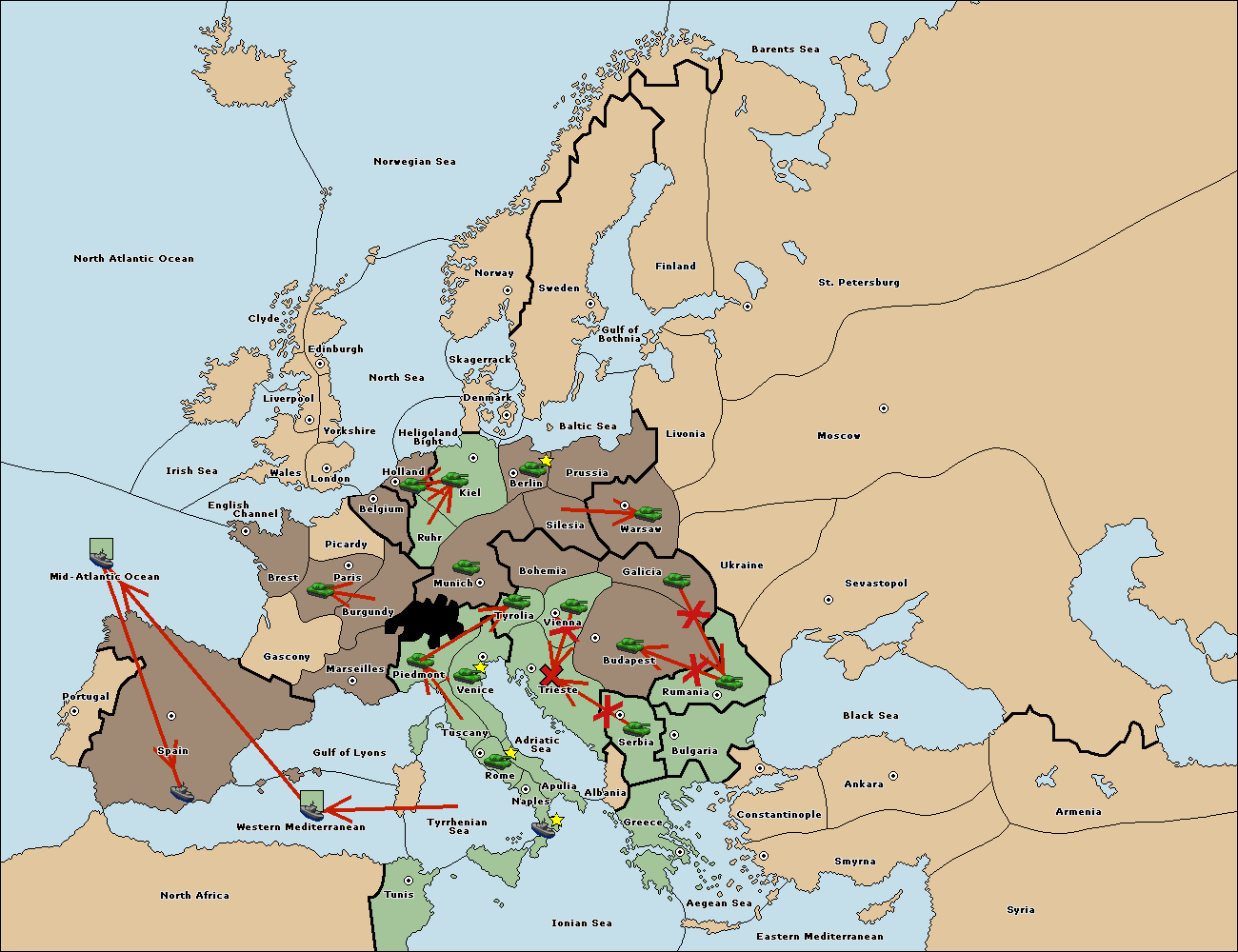 The fleet at Spain (South Coast) support move to Marseilles from Piedmont.