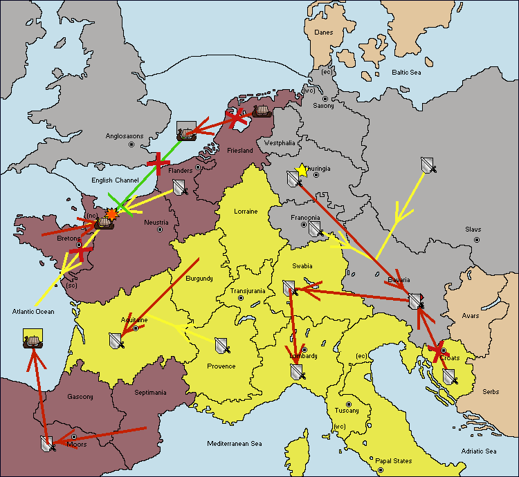 The army at Neustria support move to Bretons from Atlantic Ocean.