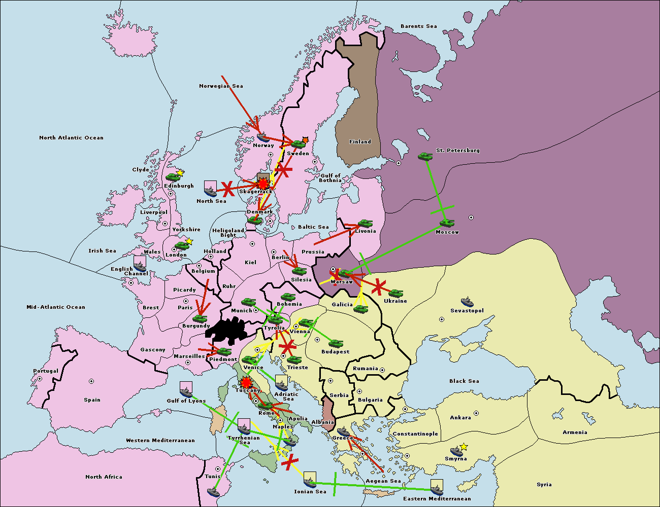 The fleet at Gulf of Lyons support hold to Tyrrhenian Sea.