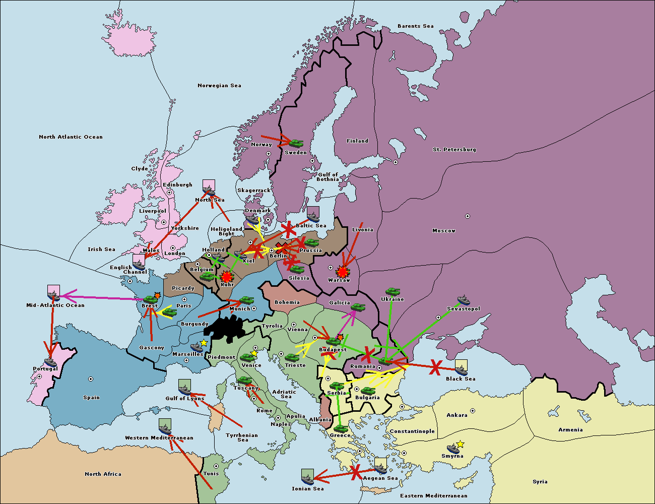The fleet at Tyrrhenian Sea move to Gulf of Lyons.