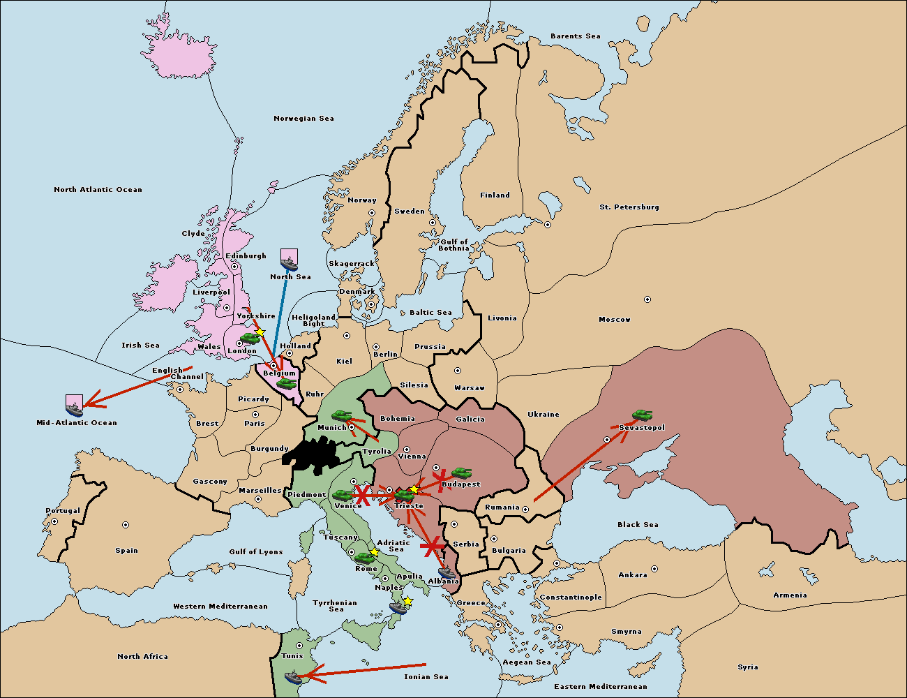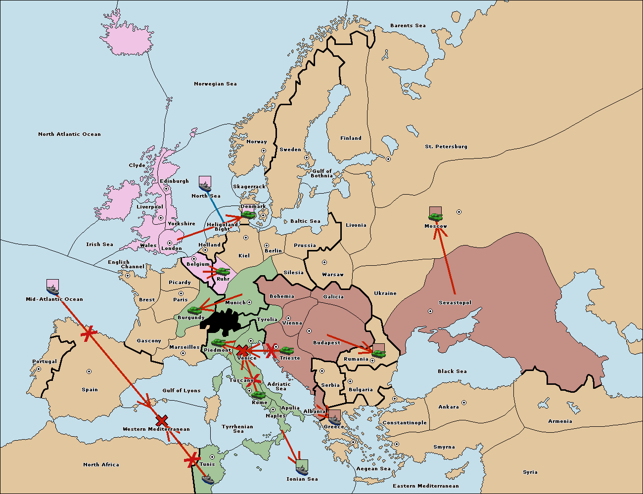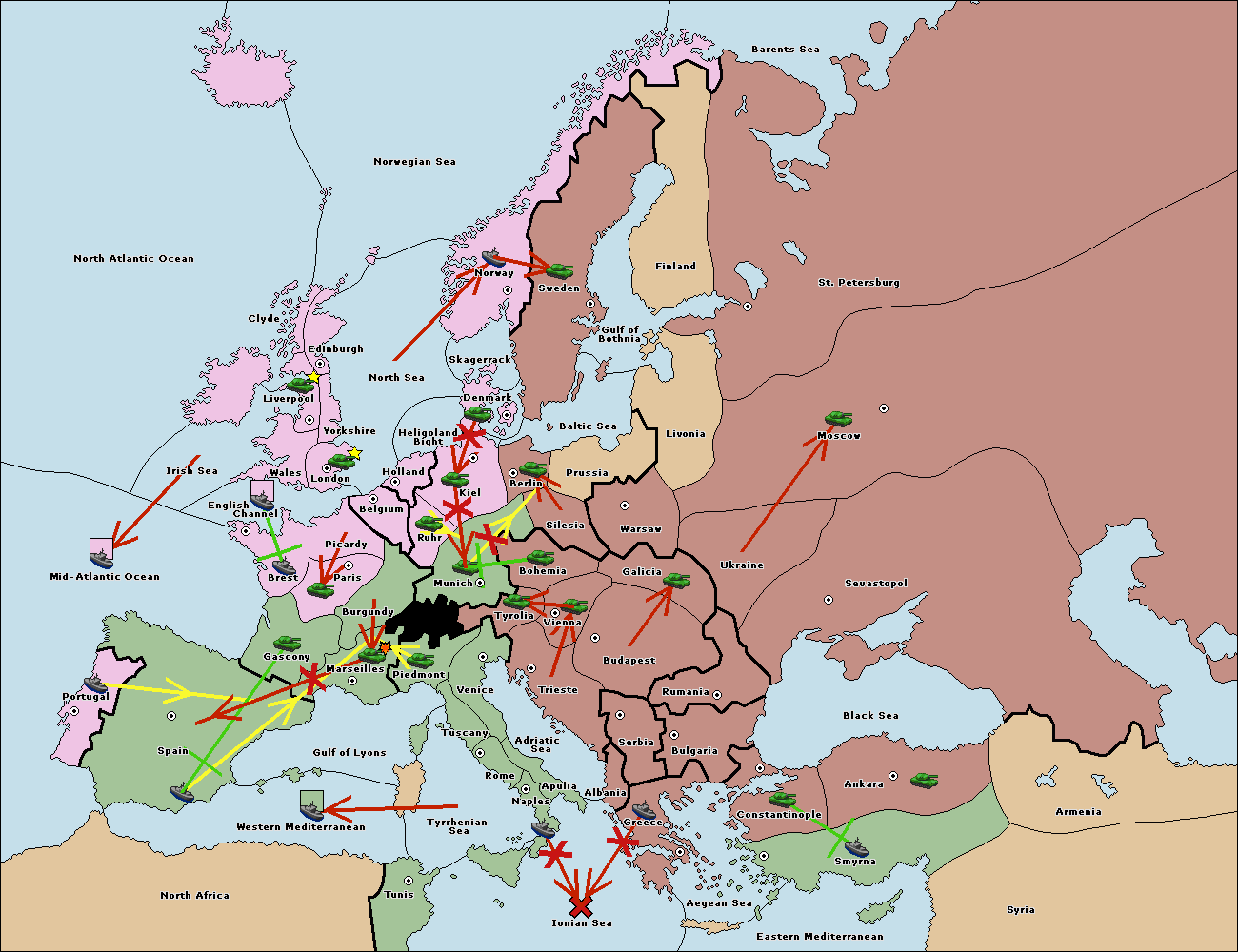 The fleet at Mid-Atlantic Ocean move to Western Mediterranean.