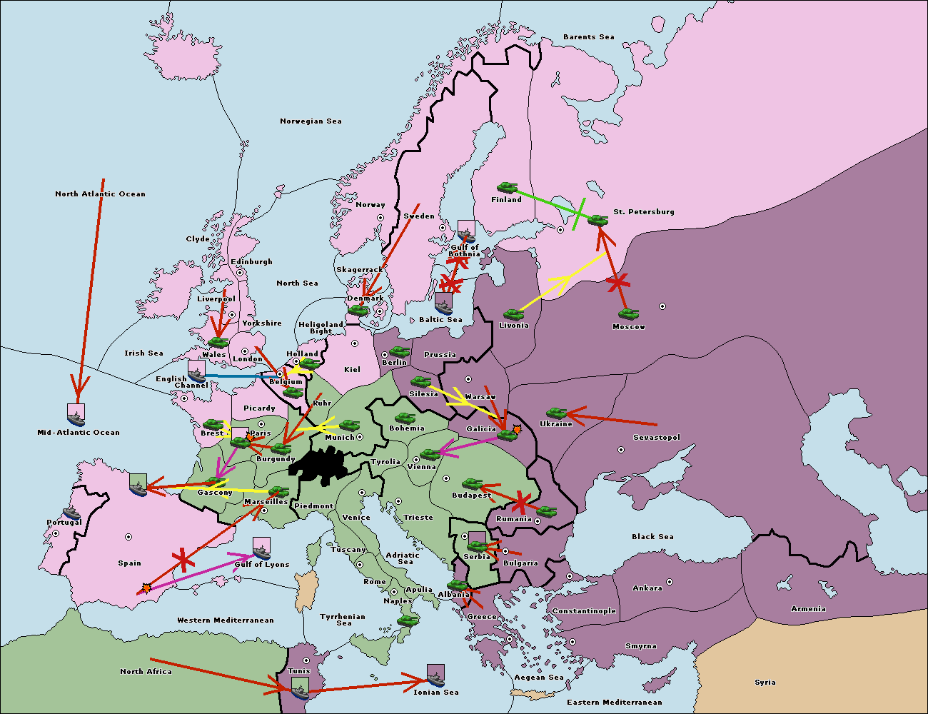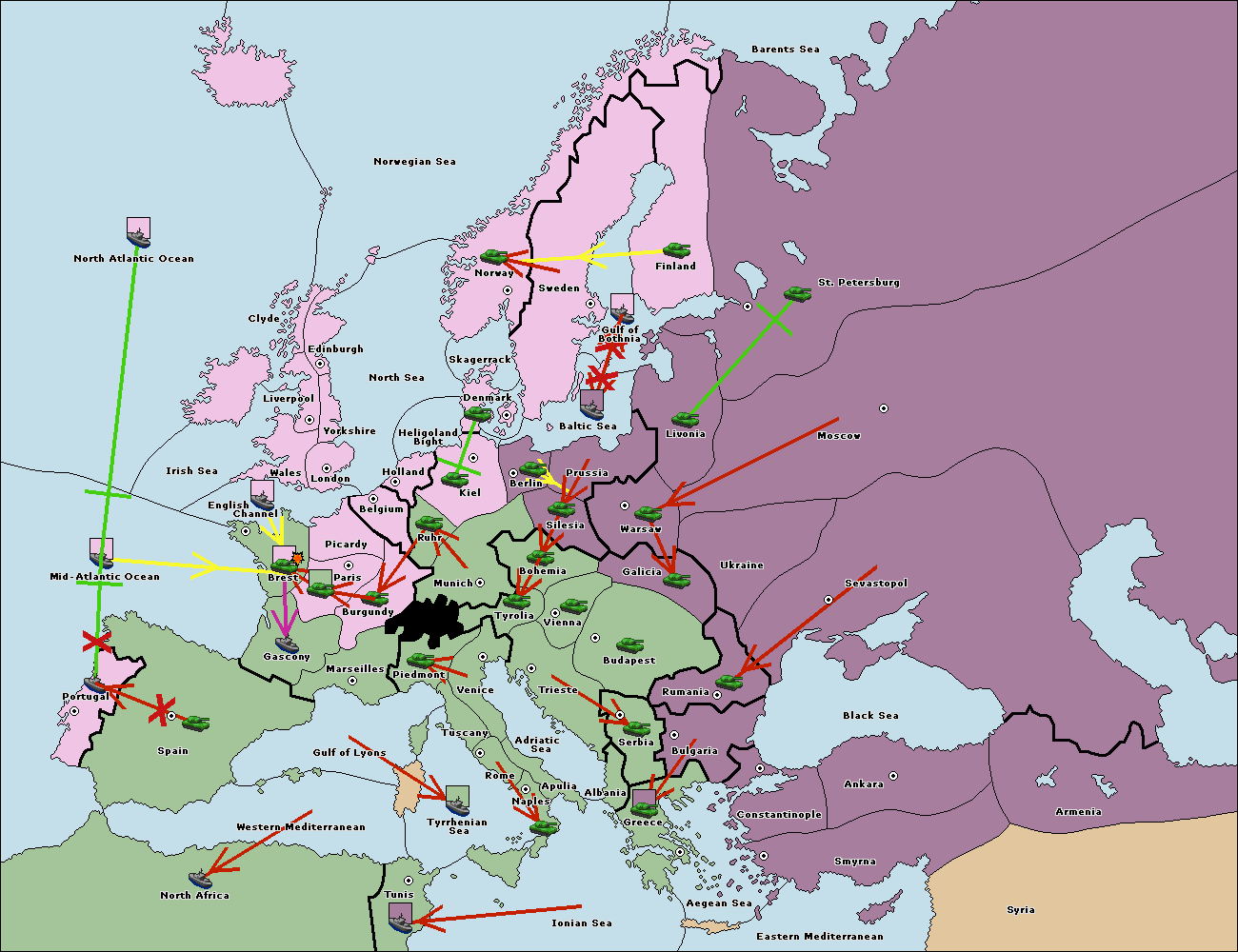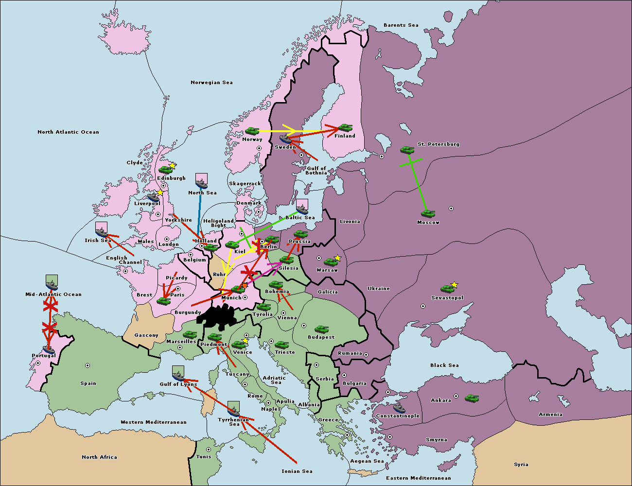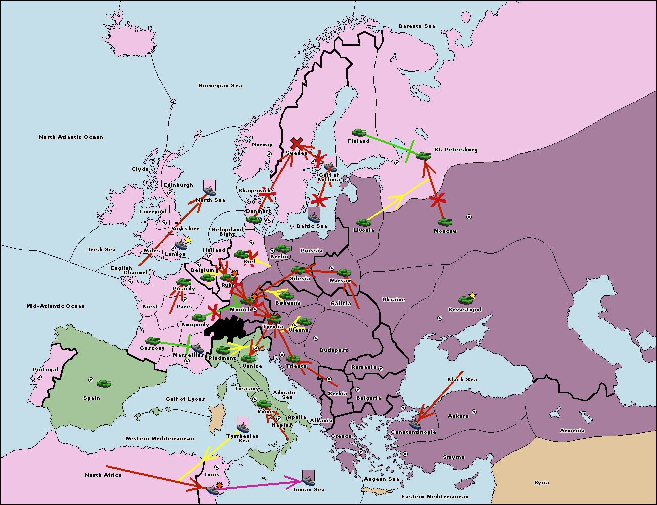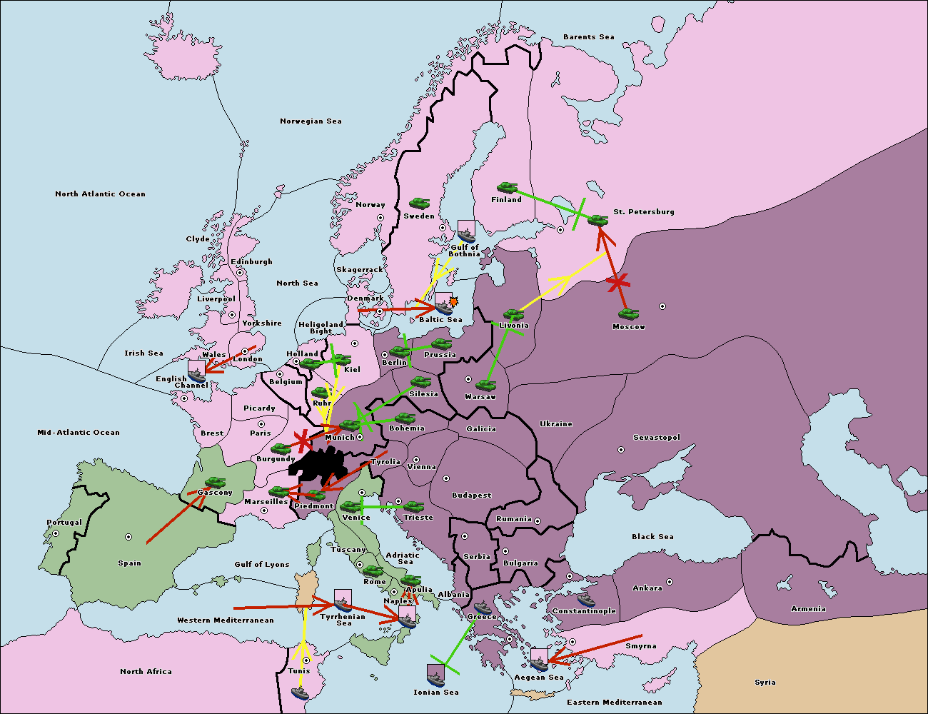 The fleet at Bulgaria (North Coast) move to Constantinople.