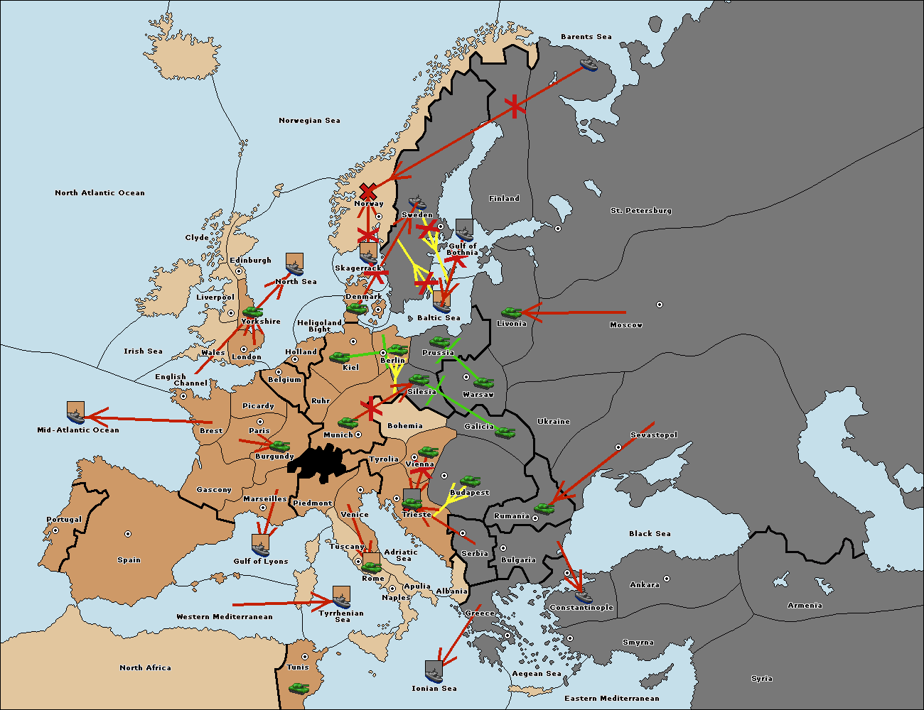 The fleet at Bulgaria (North Coast) move to Constantinople.