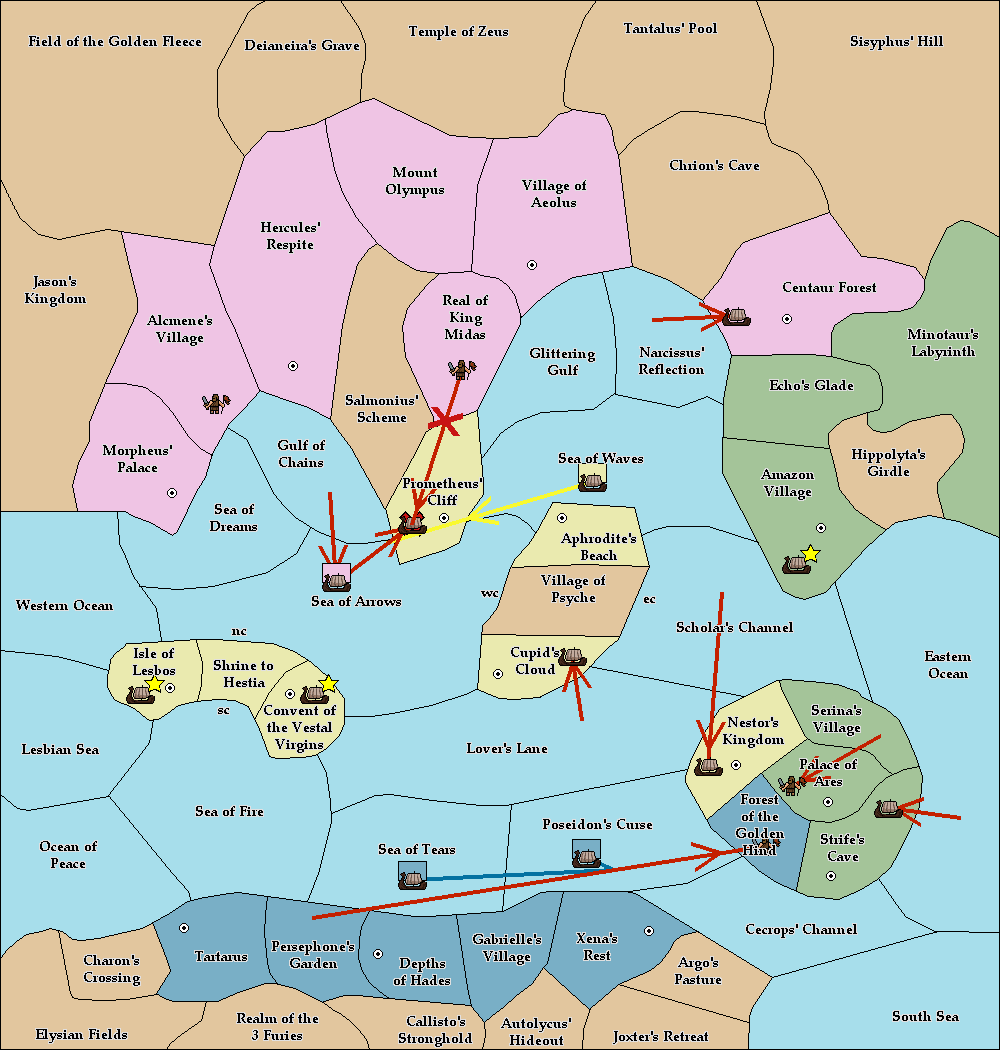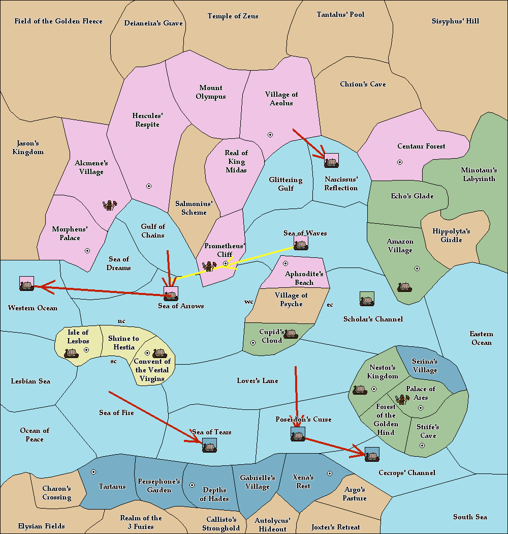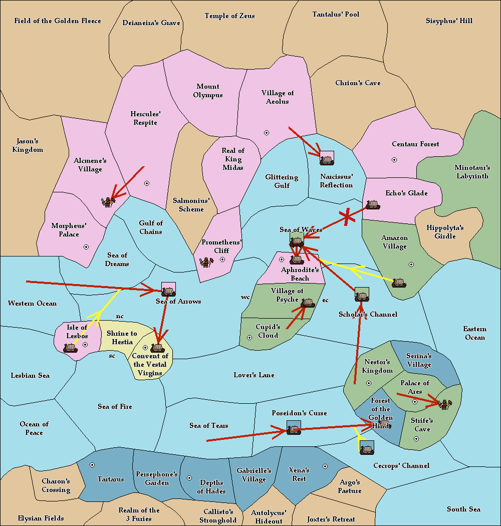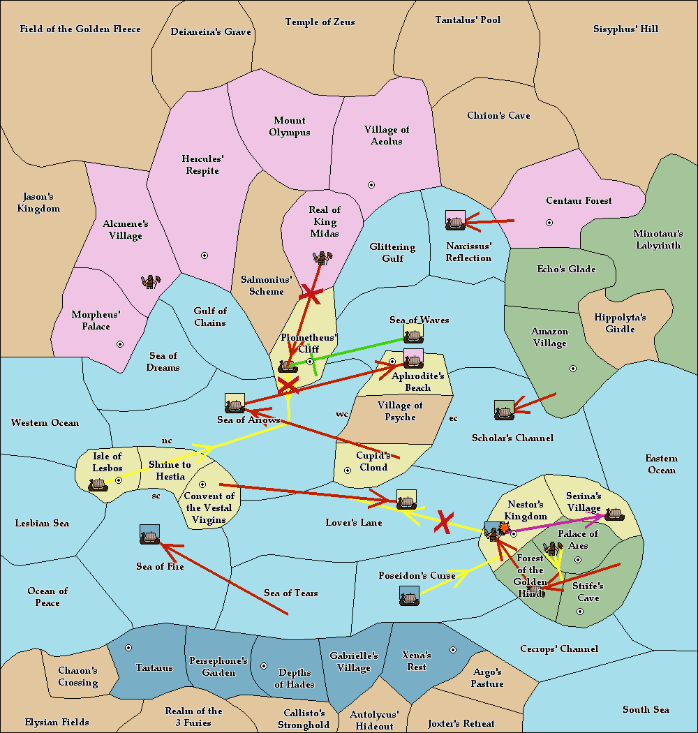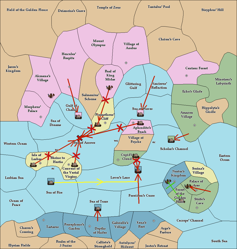 The fleet at Isle of Lesbos support move to Sea of Arrows from Cupid's Cloud.