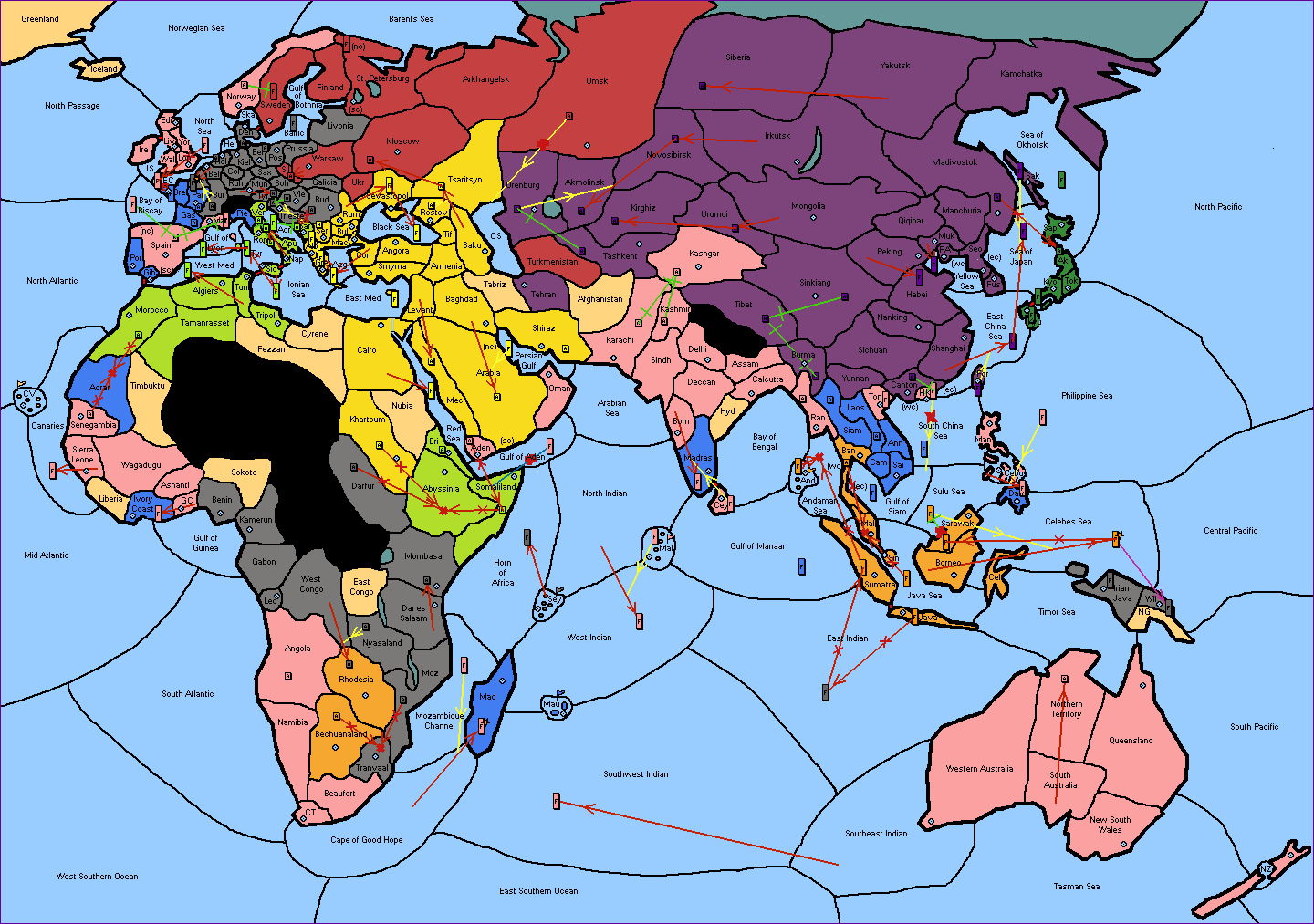 The fleet at Sulu Sea support move to Celebes Sea from Borneo.