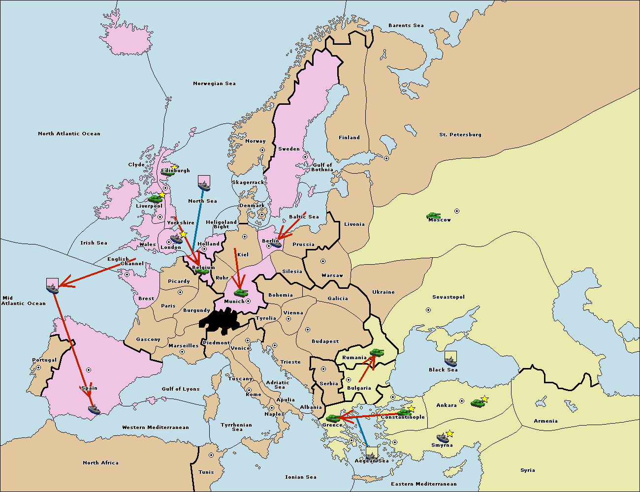The fleet at Mid-Atlantic Ocean move to Western Mediterranean.