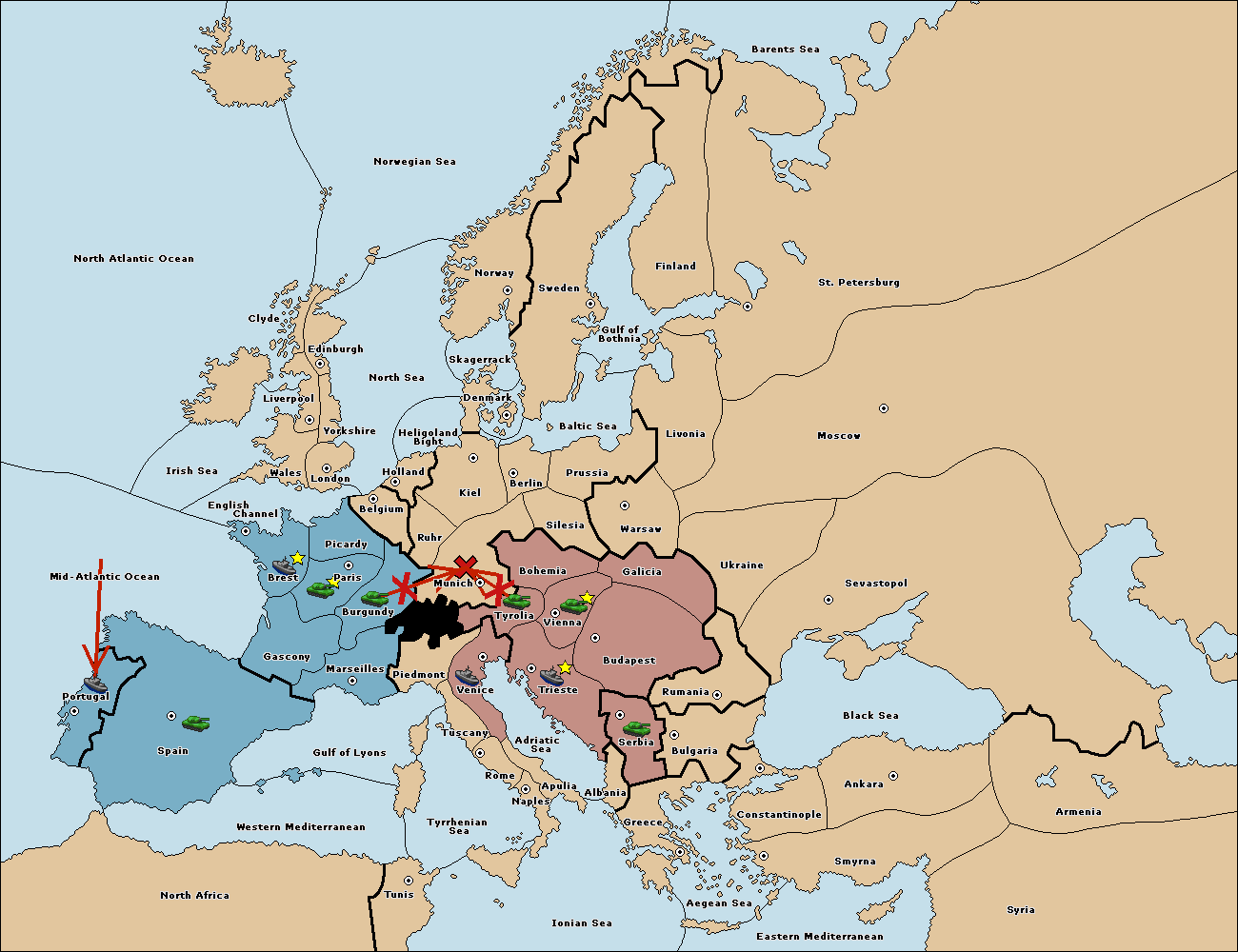 The army at Tyrolia move to Munich.