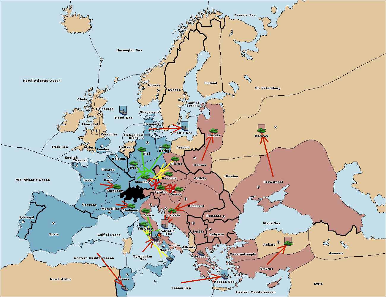 The fleet at Mid-Atlantic Ocean move to Western Mediterranean.