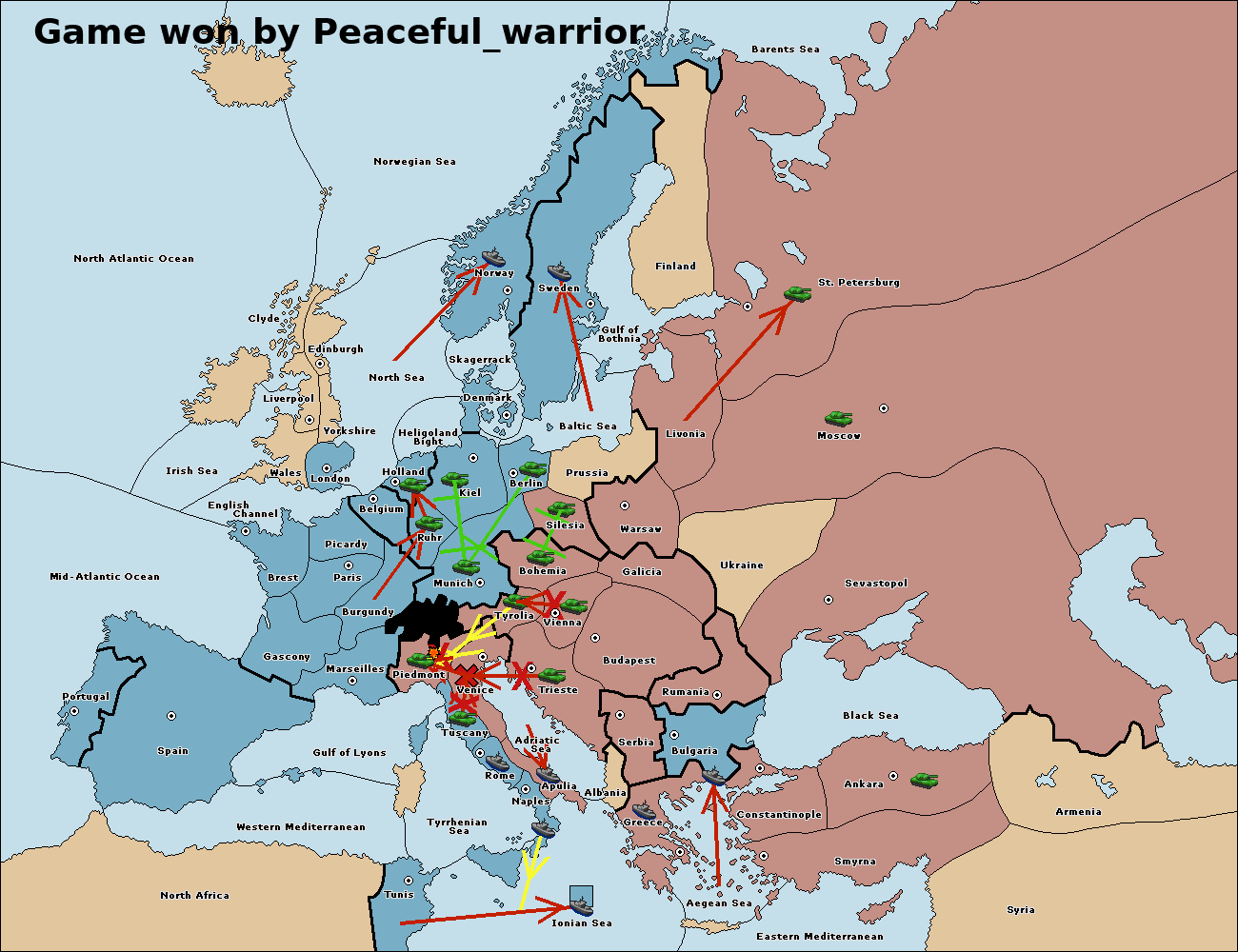 The fleet at Naples support move to Ionian Sea from Tunis.