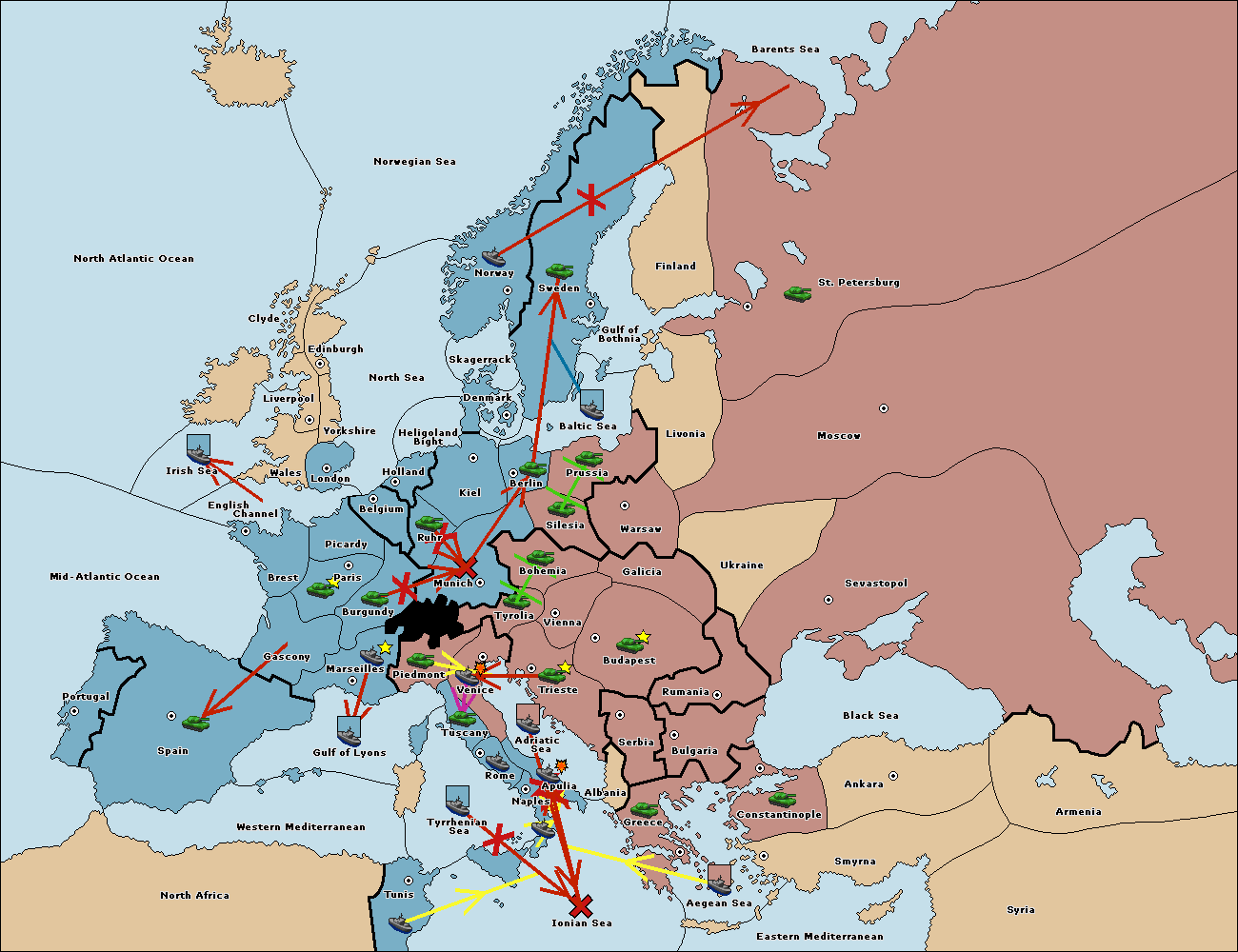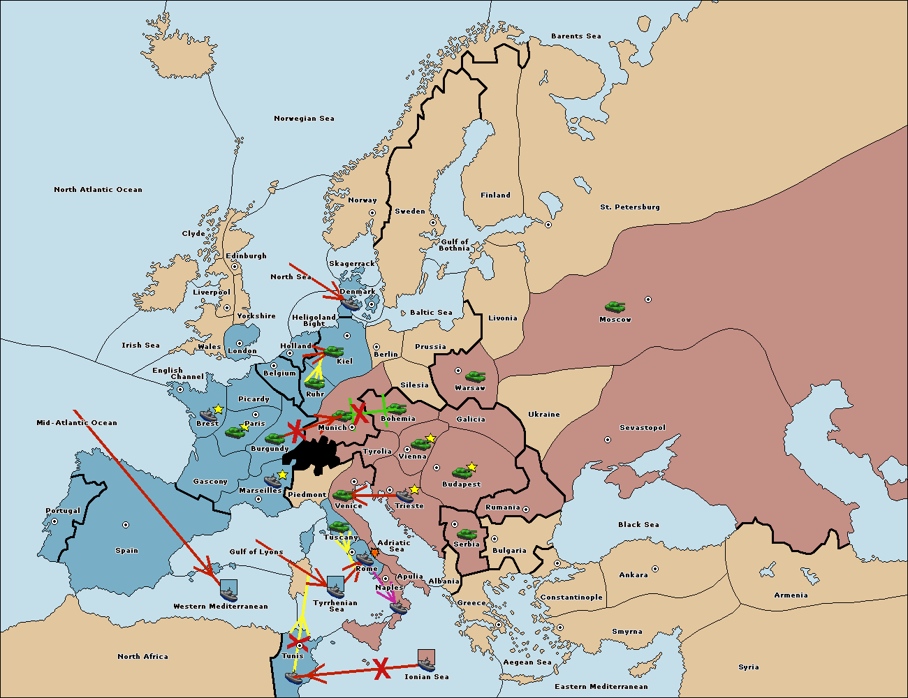 The fleet at Mid-Atlantic Ocean move to Western Mediterranean.