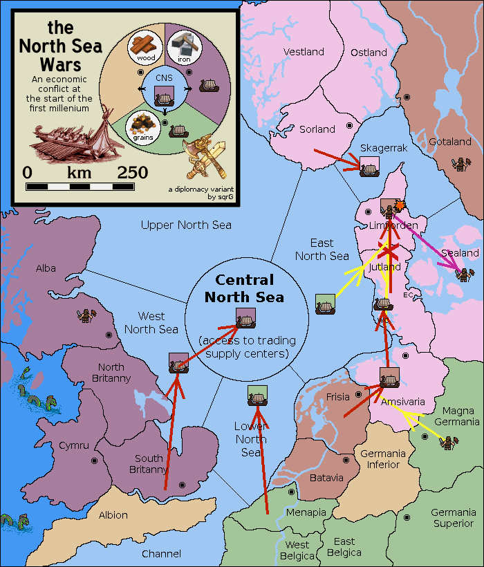 The fleet at Jutland (West Coast) support move to Amsivaria from Sealand.