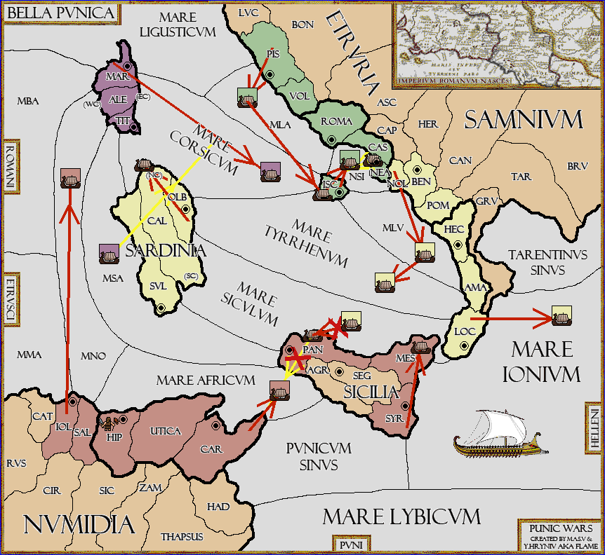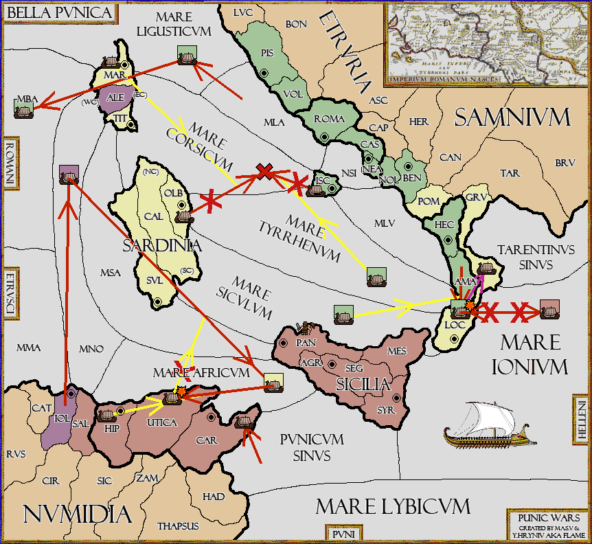The fleet at Mare Tyrrhenum move to Mare Siculum.