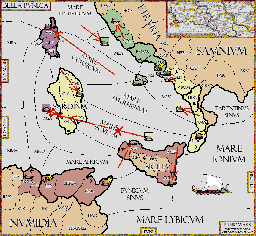 The fleet at Mare Tyrrhenum move to Mare Corsicum.