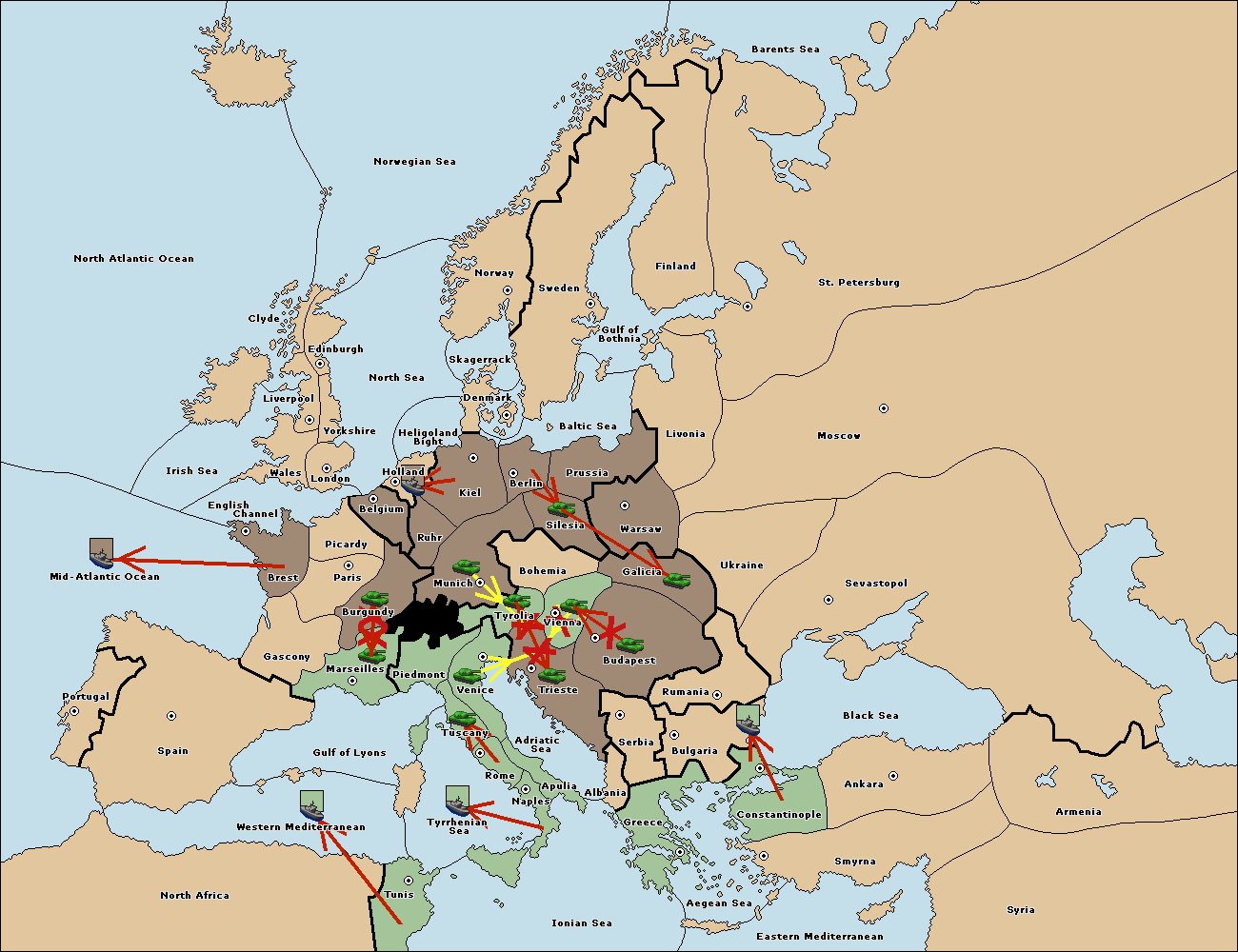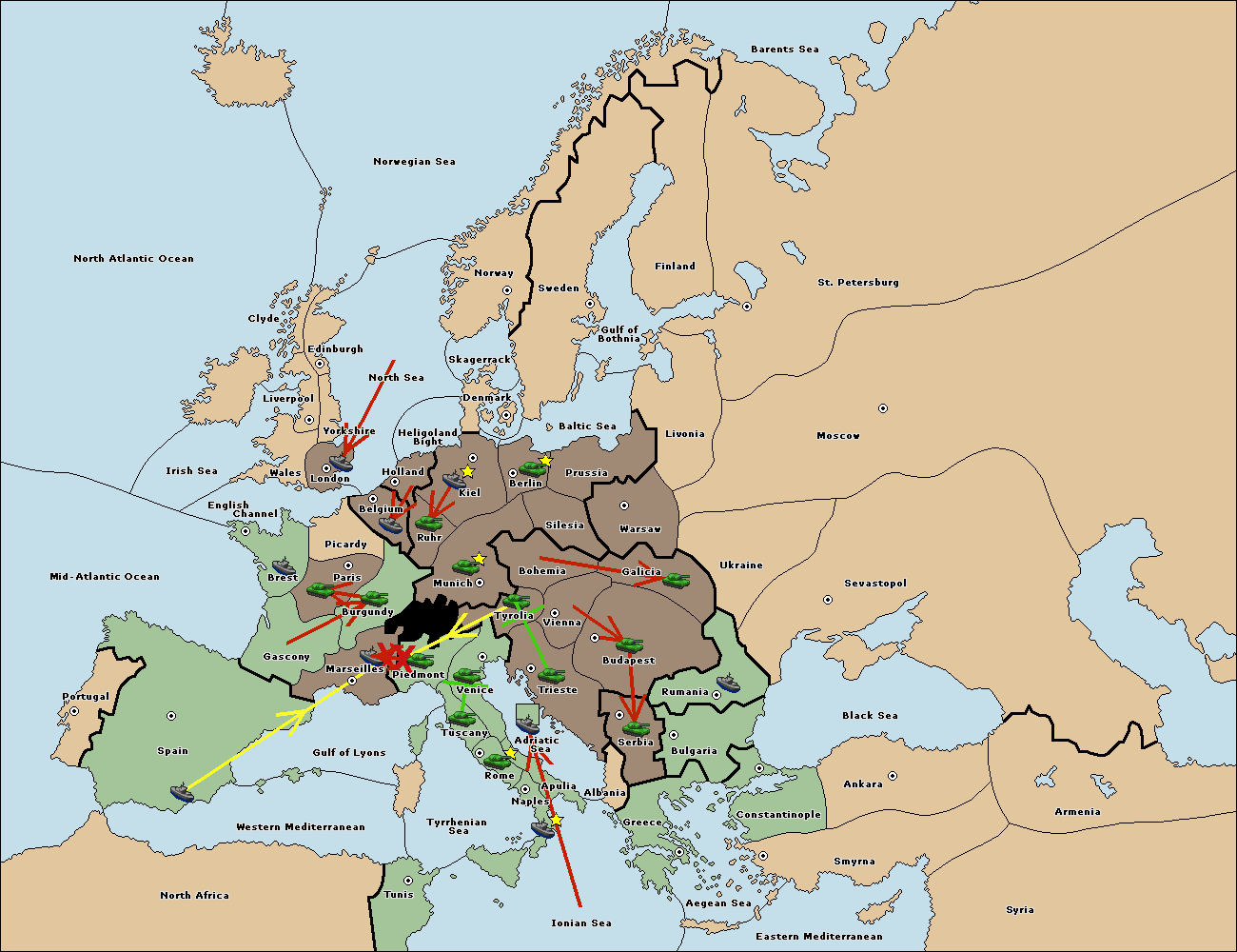 The fleet at Spain (South Coast) support move to Marseilles from Burgundy.