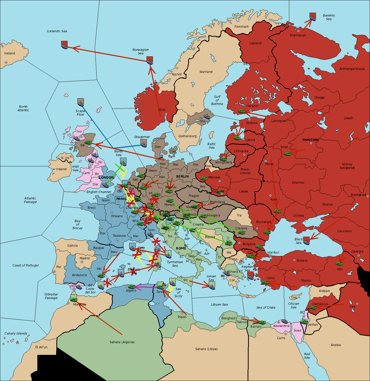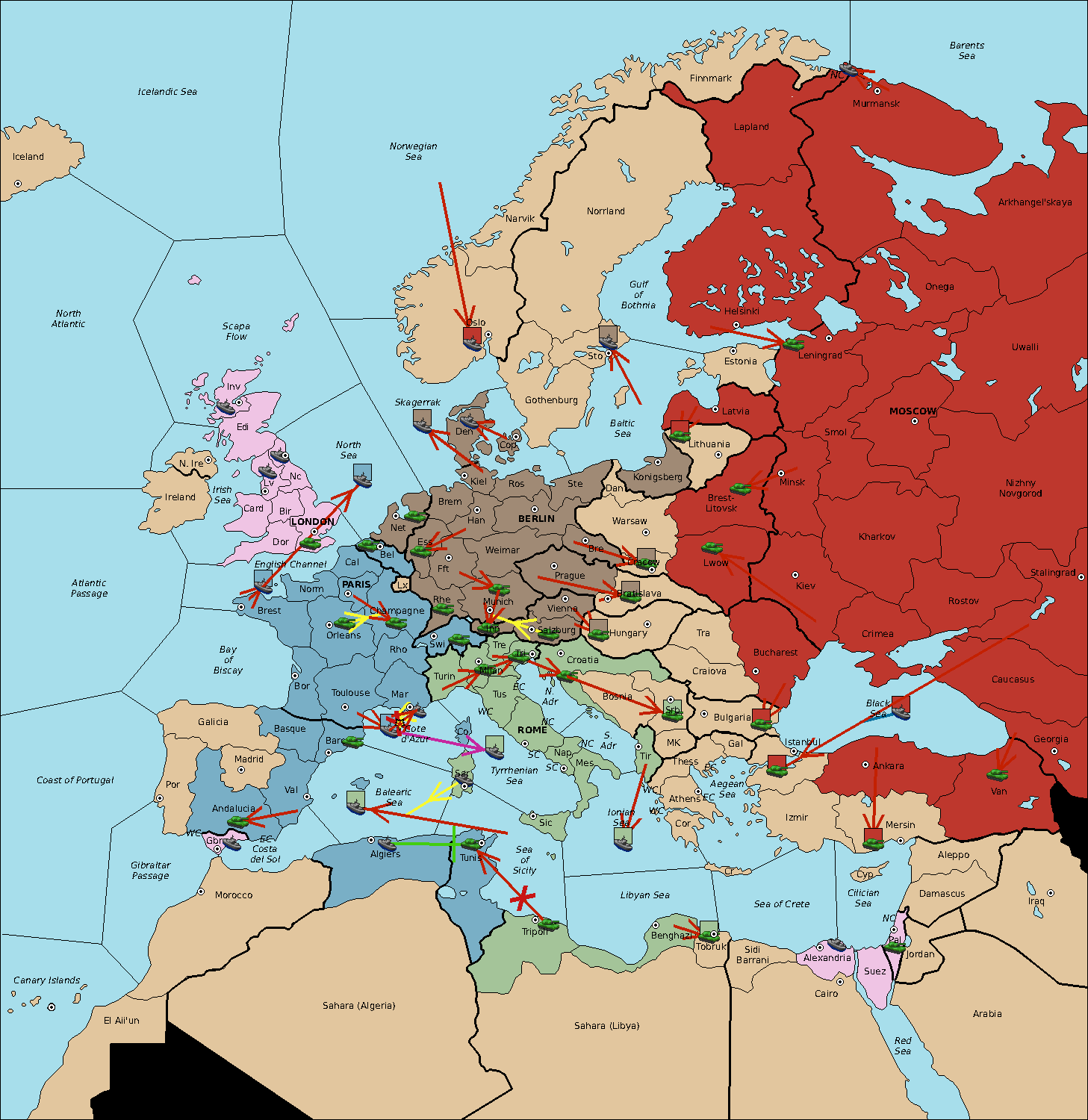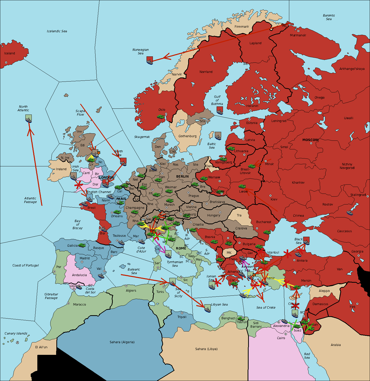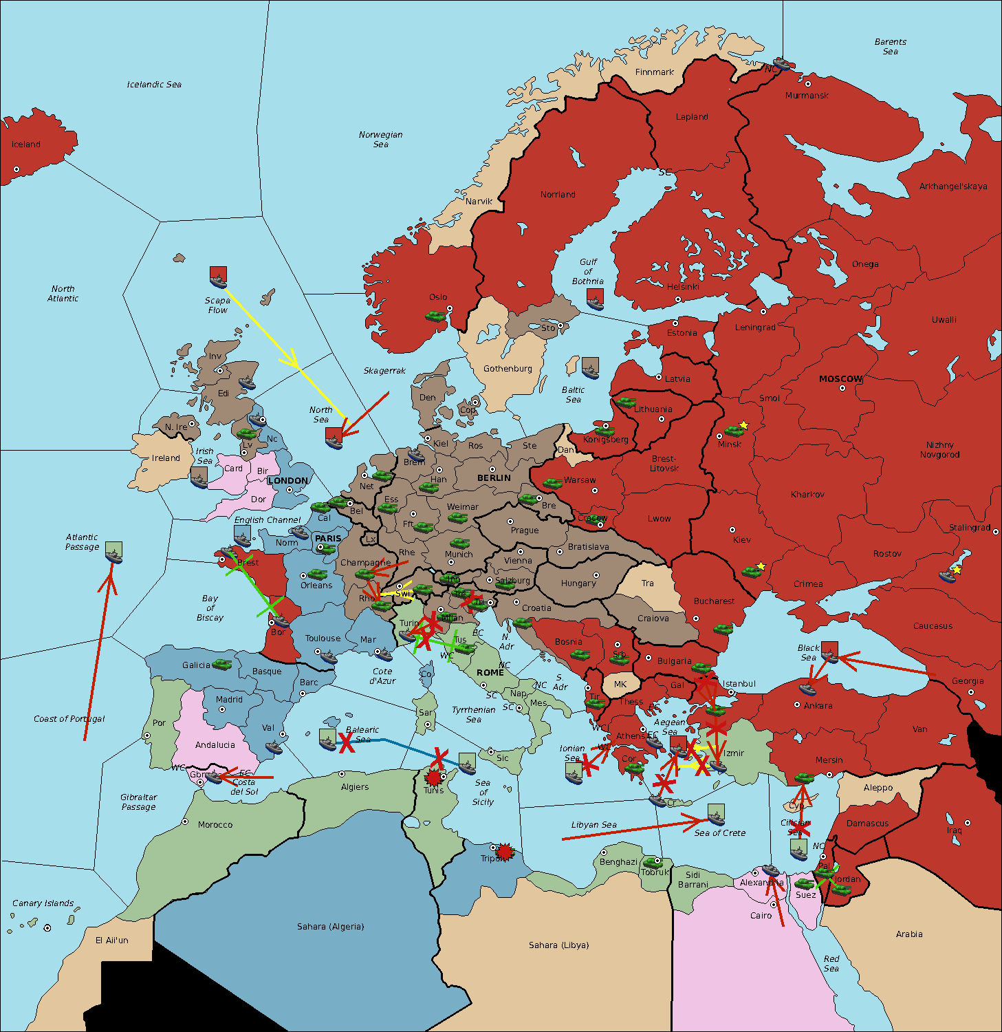 The fleet at Sardinia support move to Balearic Sea from Sea of Sicily.