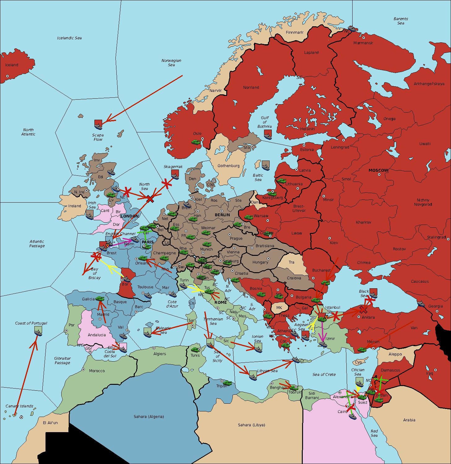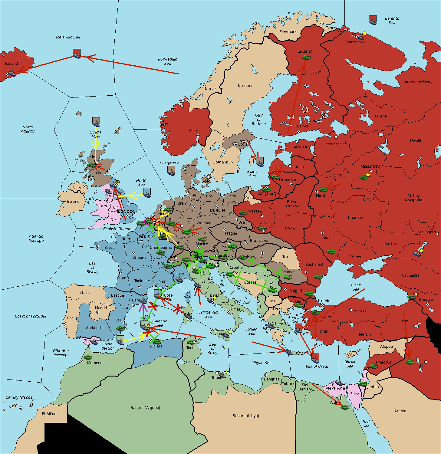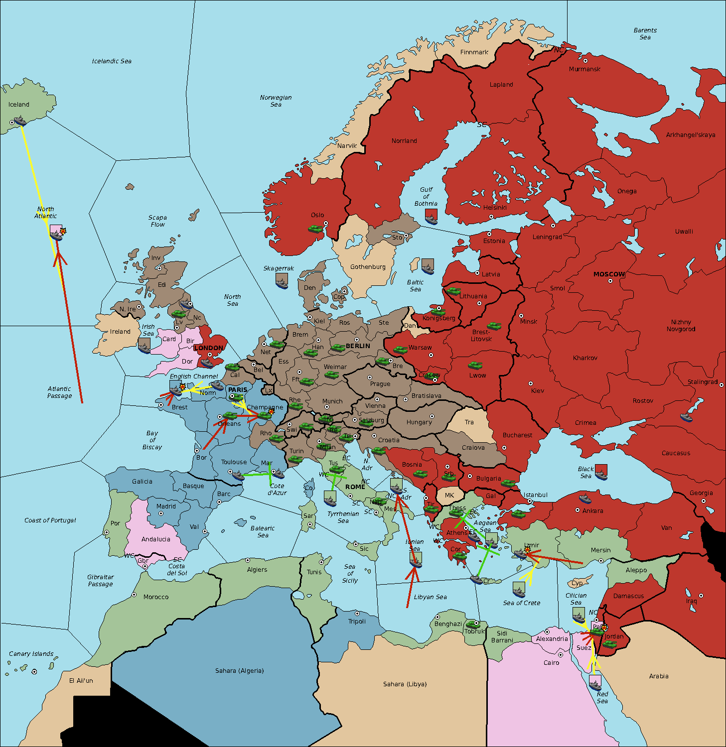 The fleet at Sardinia support move to Balearic Sea from Sea of Sicily.