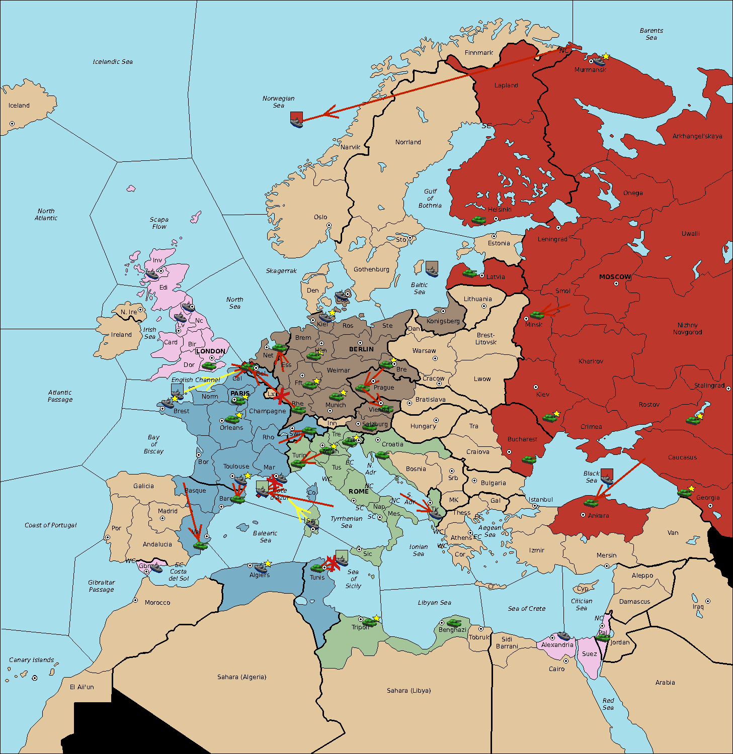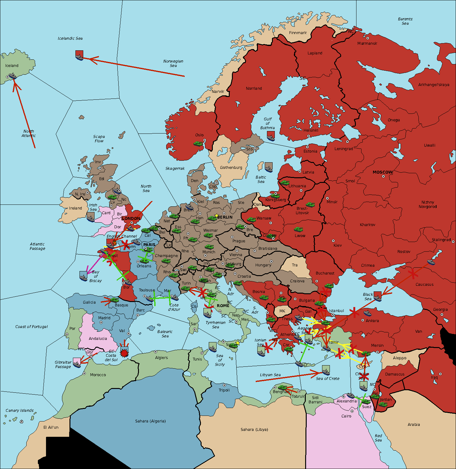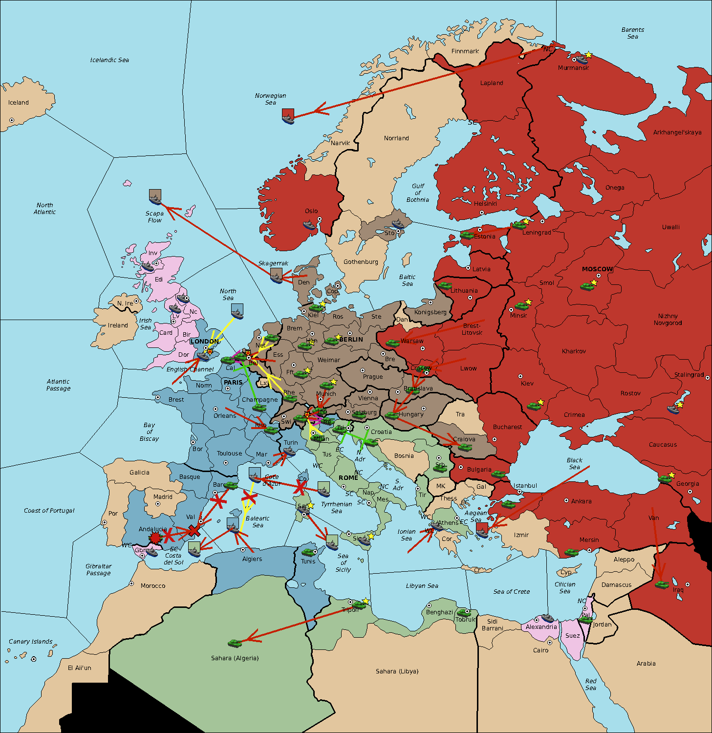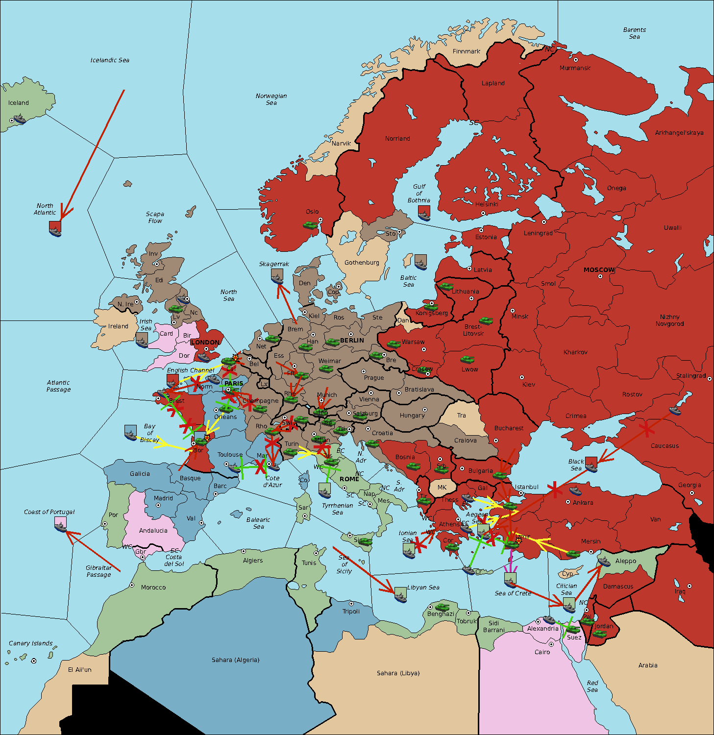 The fleet at Sardinia support move to Balearic Sea from Sea of Sicily.