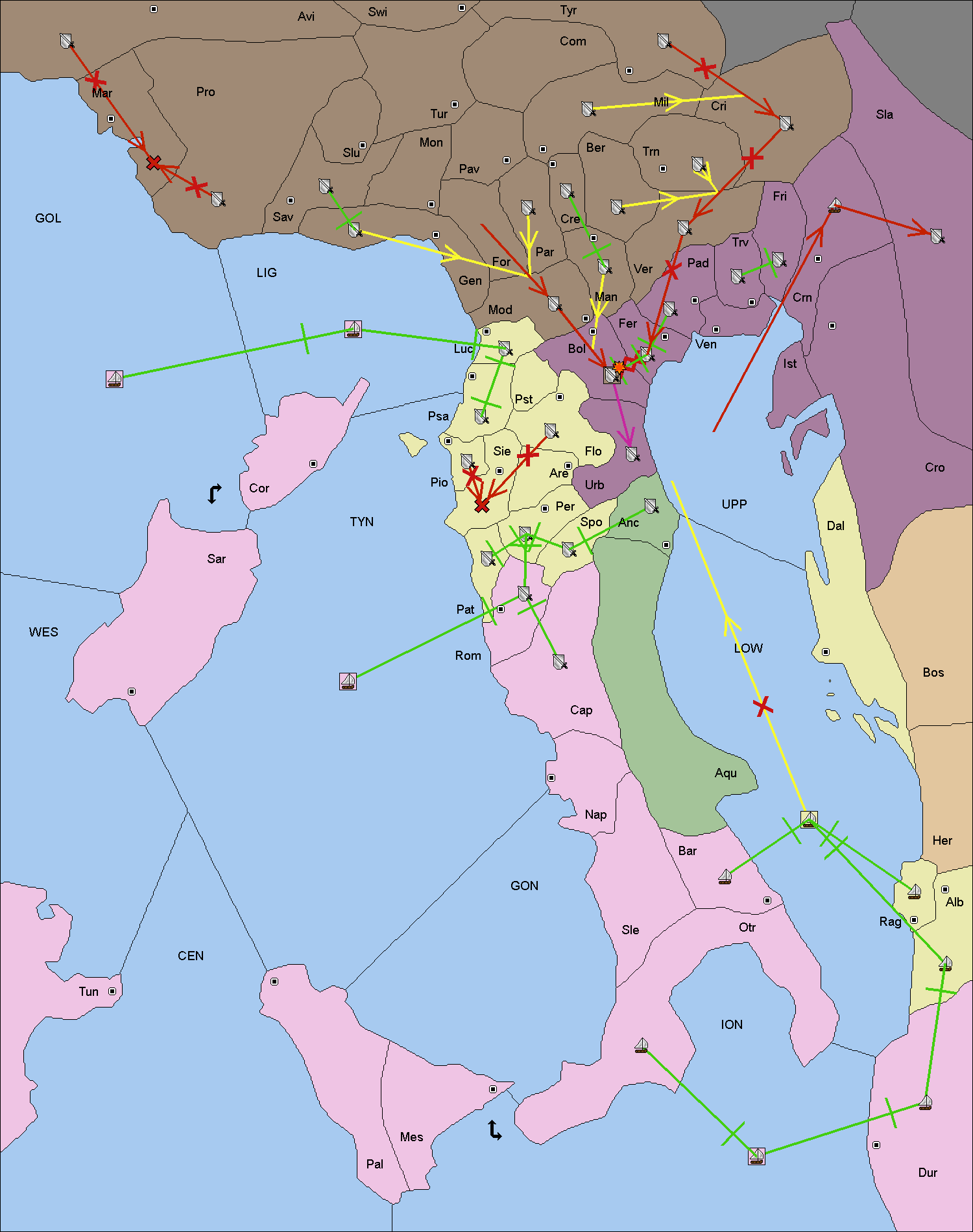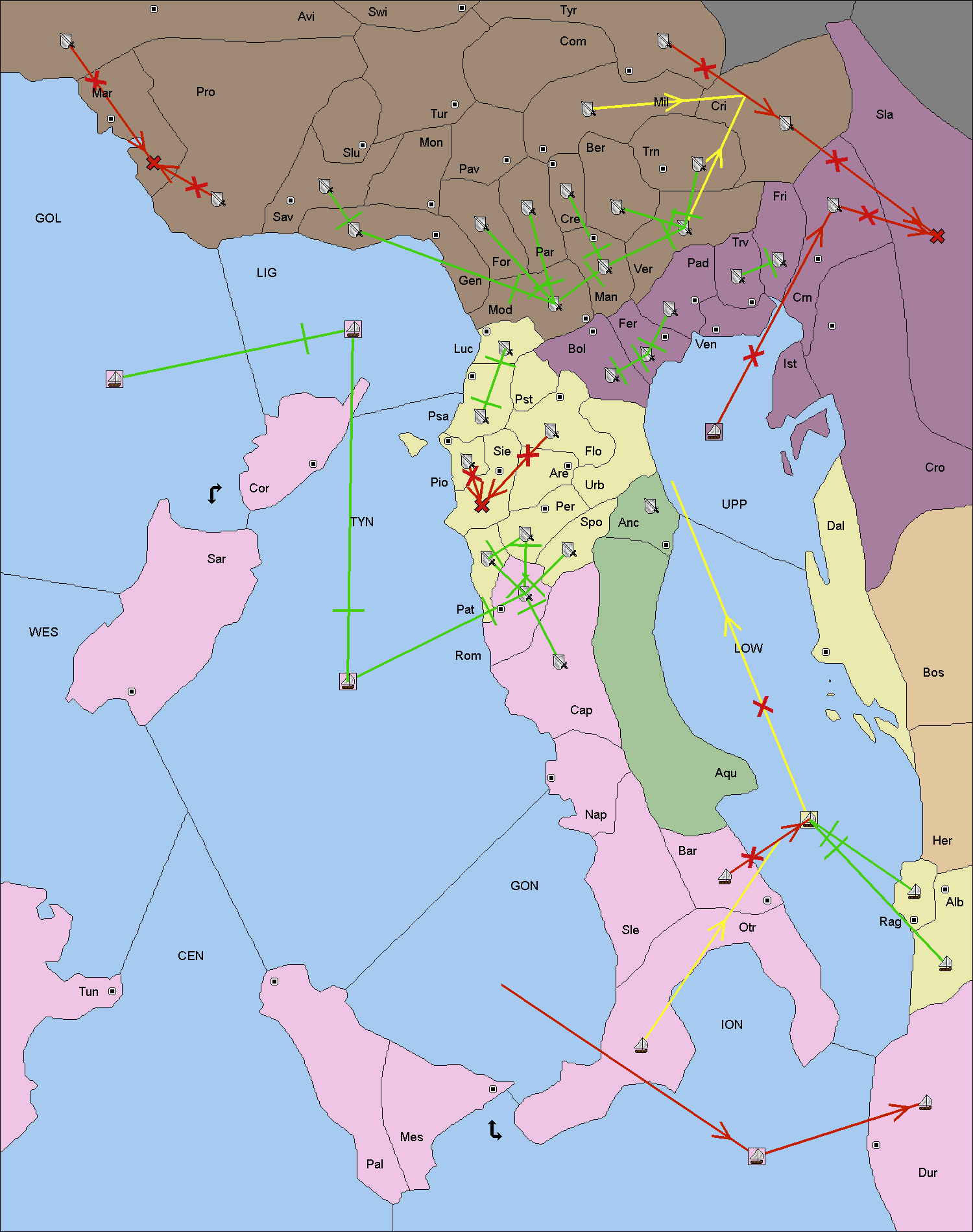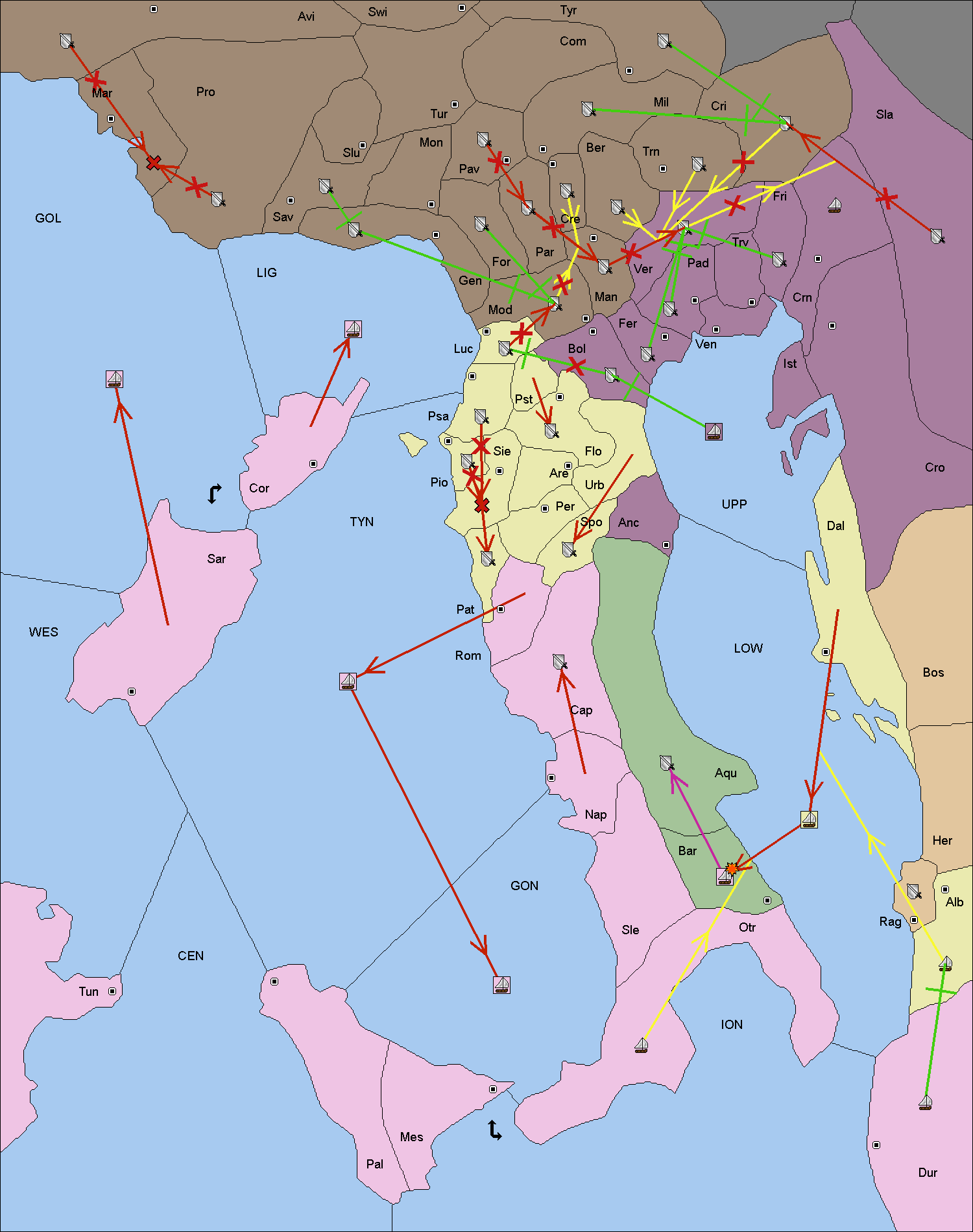 The fleet at Tyrrhenian Sea support hold to Rome.