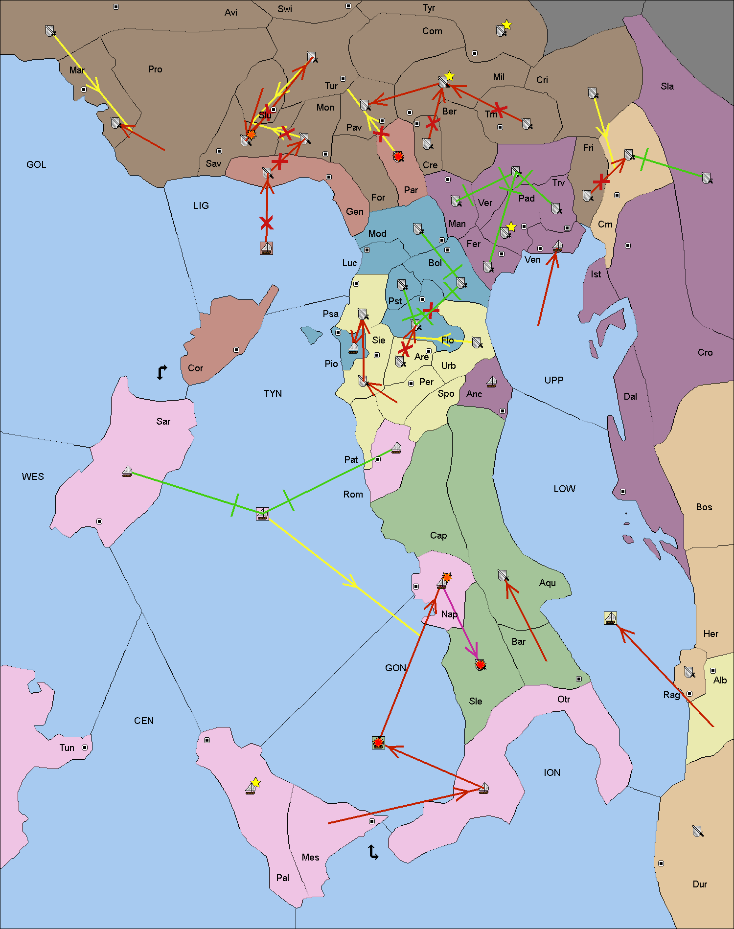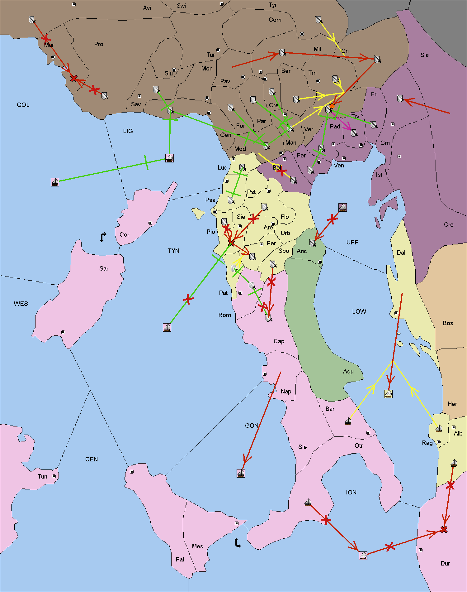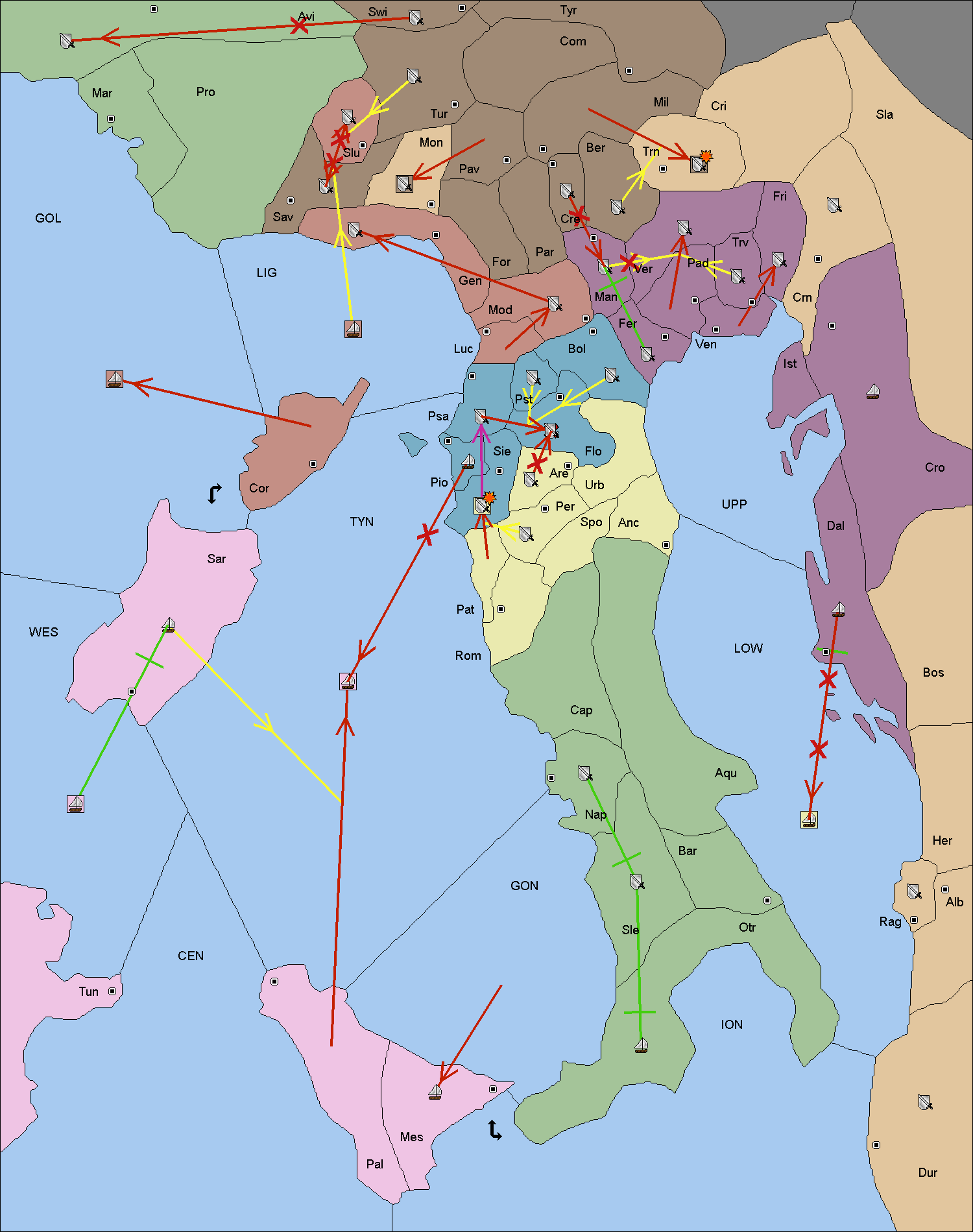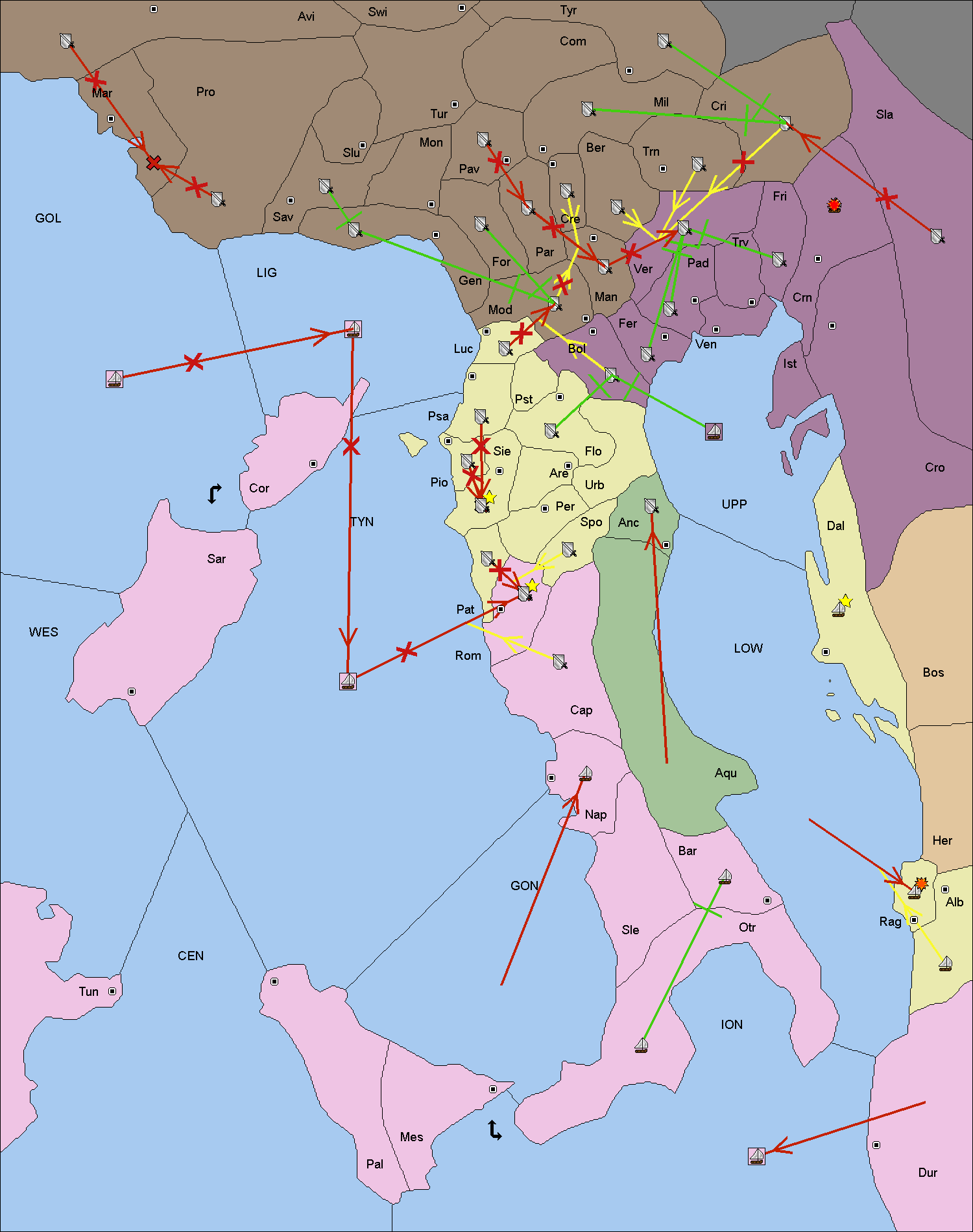 The fleet at Tyrrhenian Sea support hold to Rome.