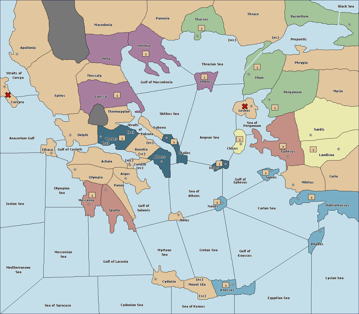 Greek Diplomacy, Очки за центры, С выбором страны