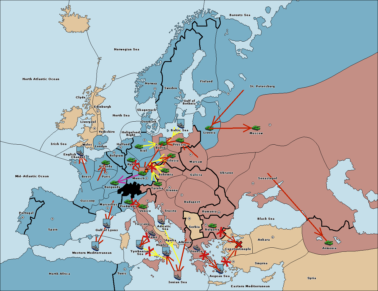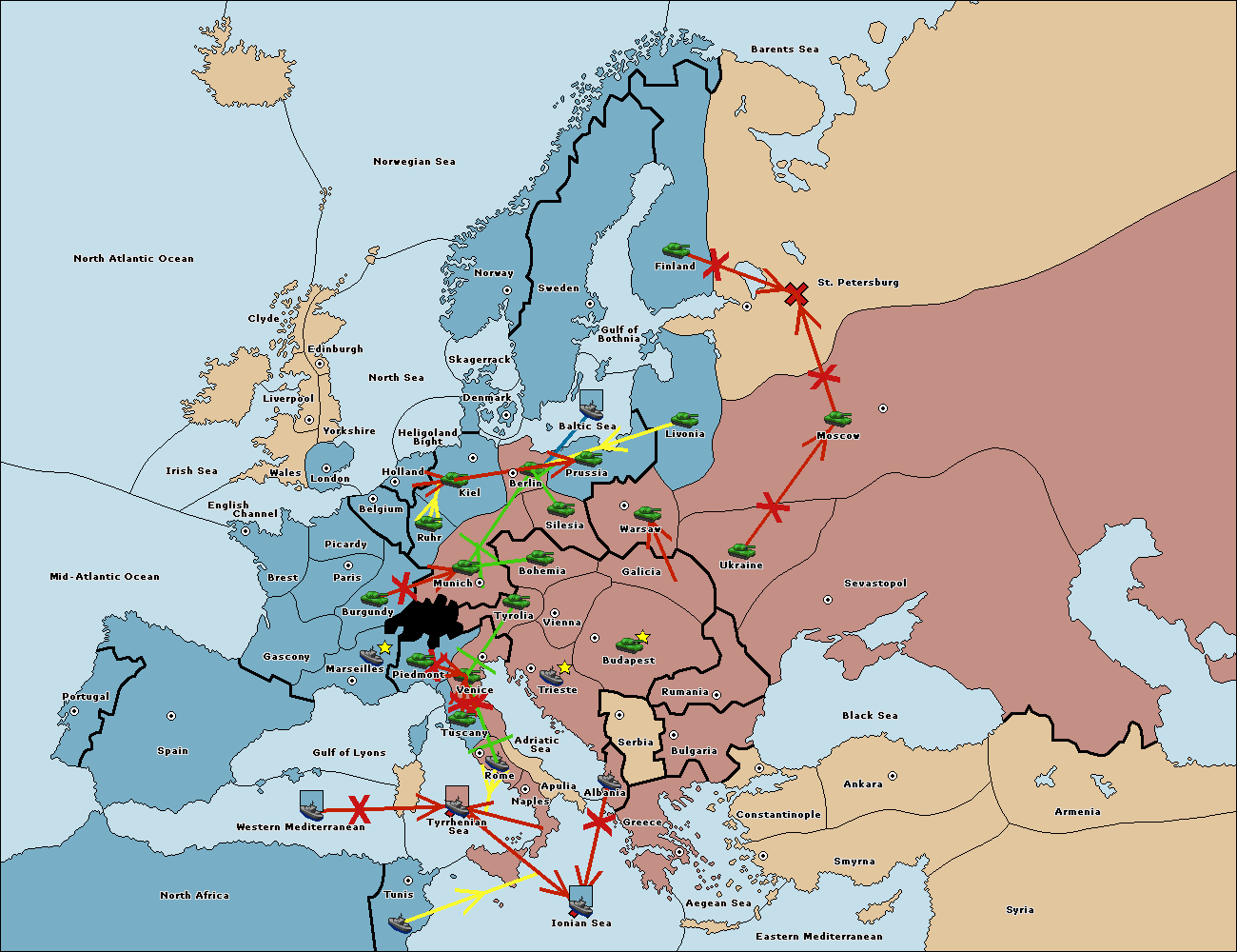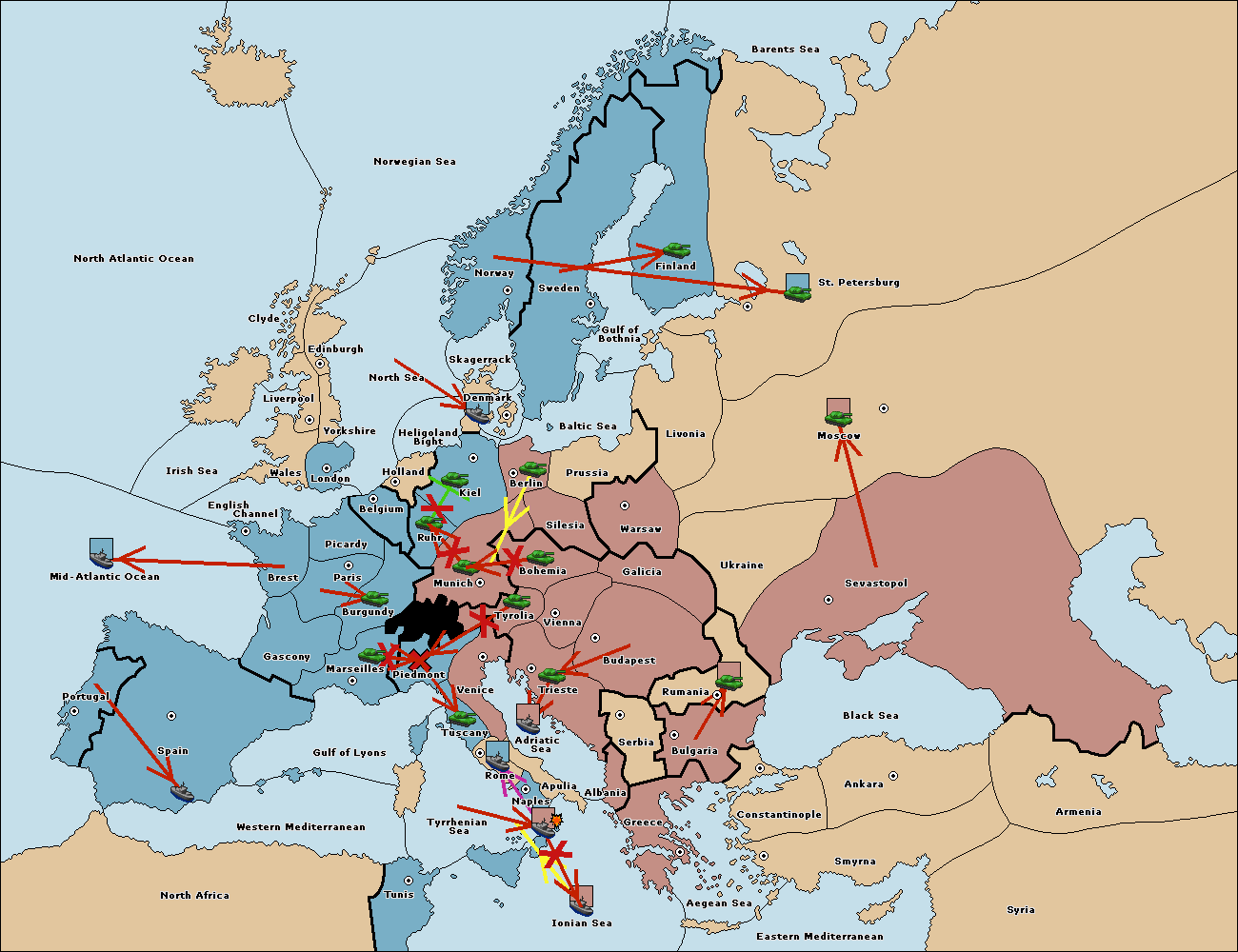 The fleet at Ionian Sea support move to Naples from Tyrrhenian Sea.