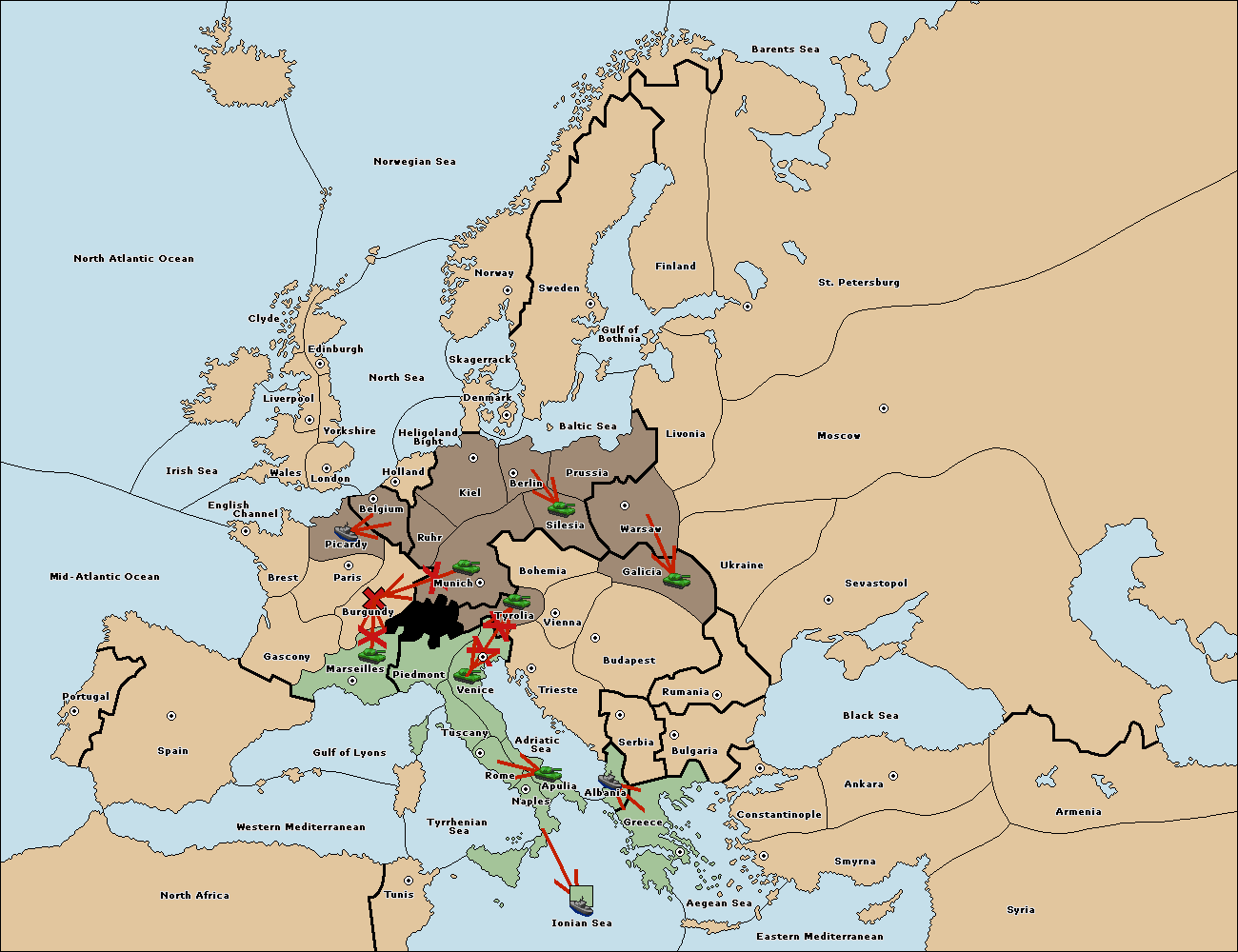 The army at Munich move to Burgundy.