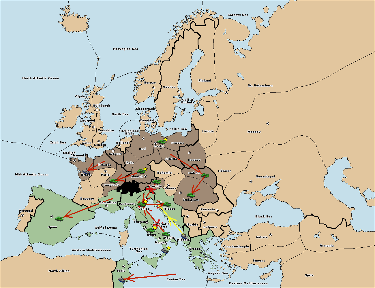 The army at Tyrolia move to Trieste.