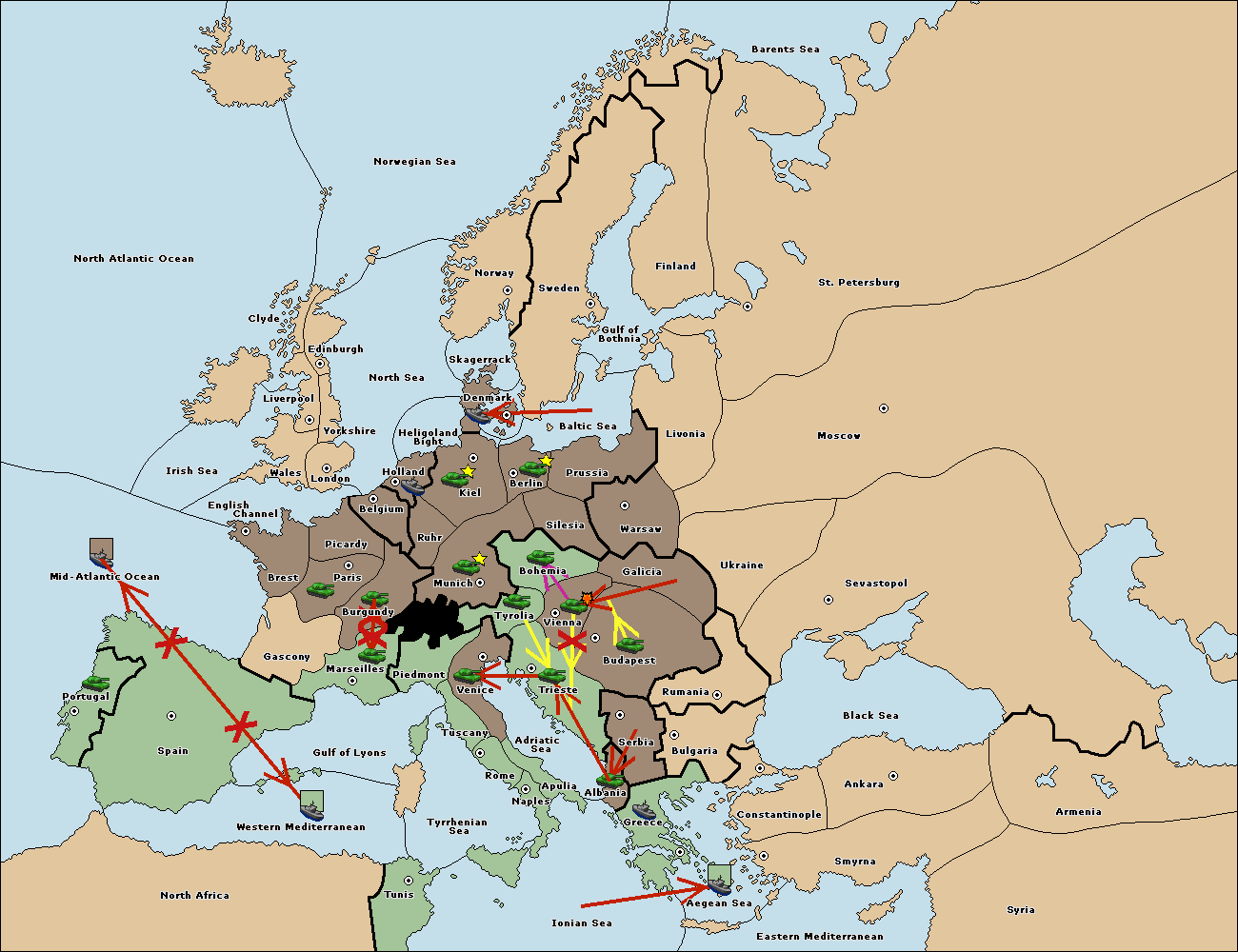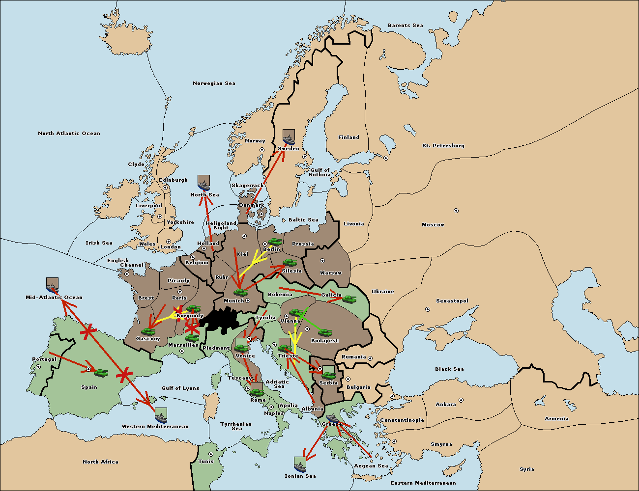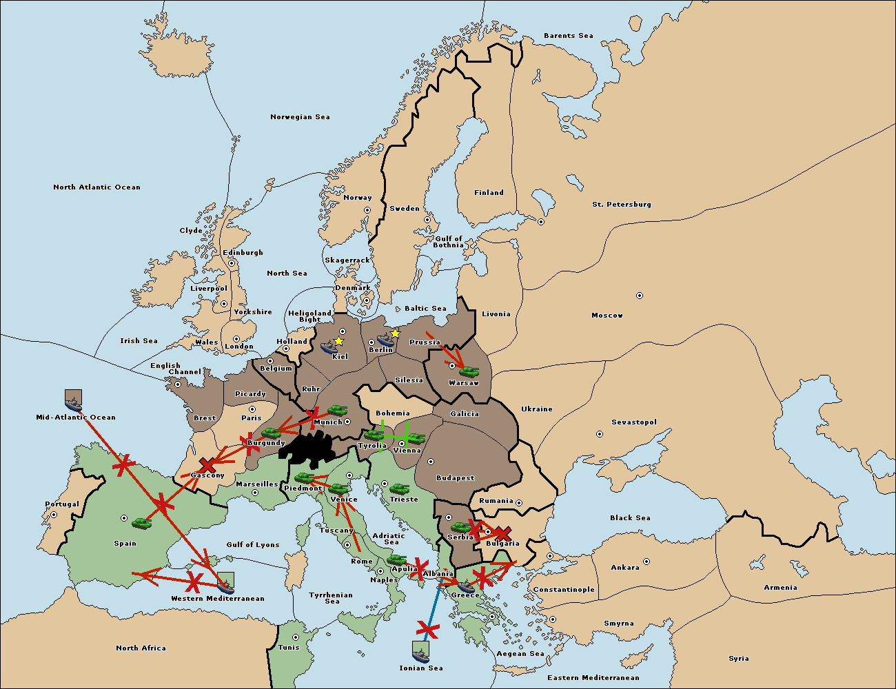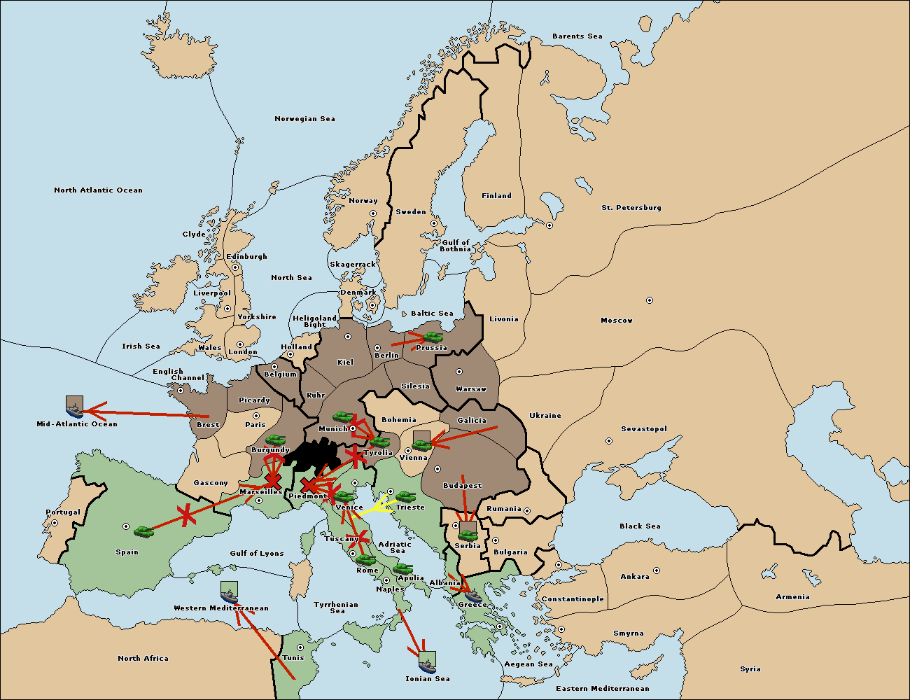 The fleet at Mid-Atlantic Ocean move to Western Mediterranean.
